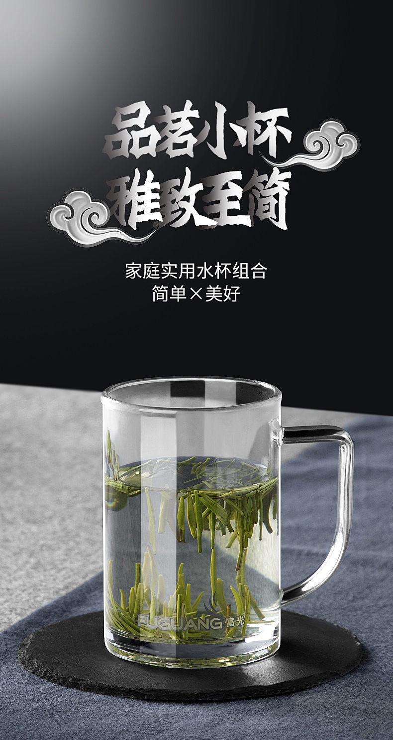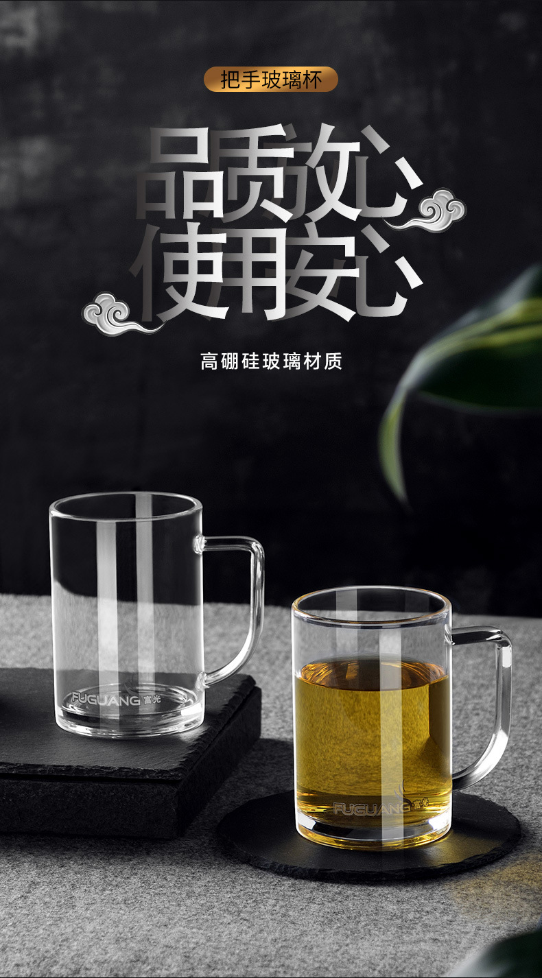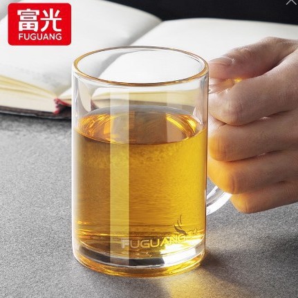 푸광 물컵, 심플 투명컵, 고붕규산 유리컵, 두꺼운 찻잔, 손잡이가 있는 컵, 맞춤 도매스토어 가기