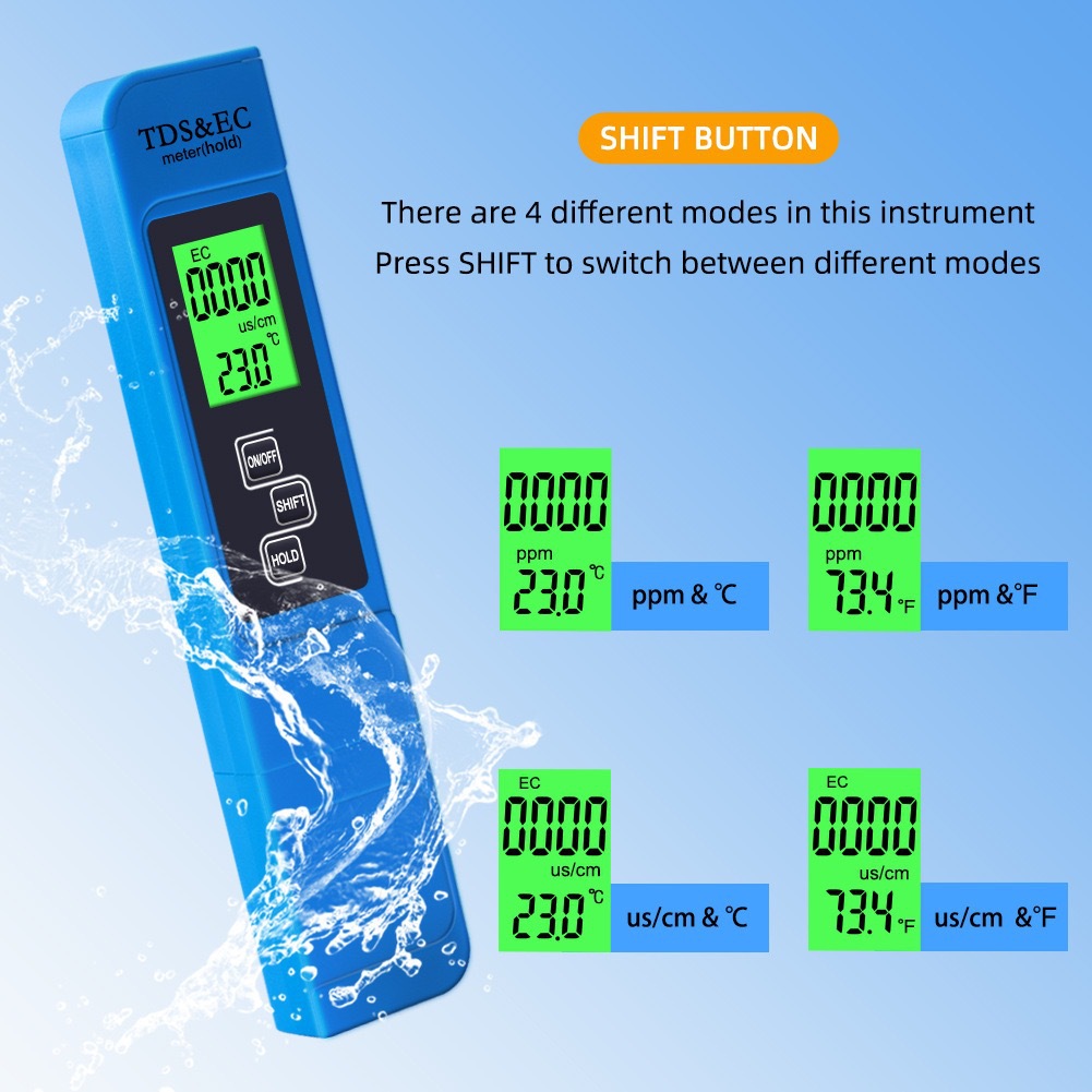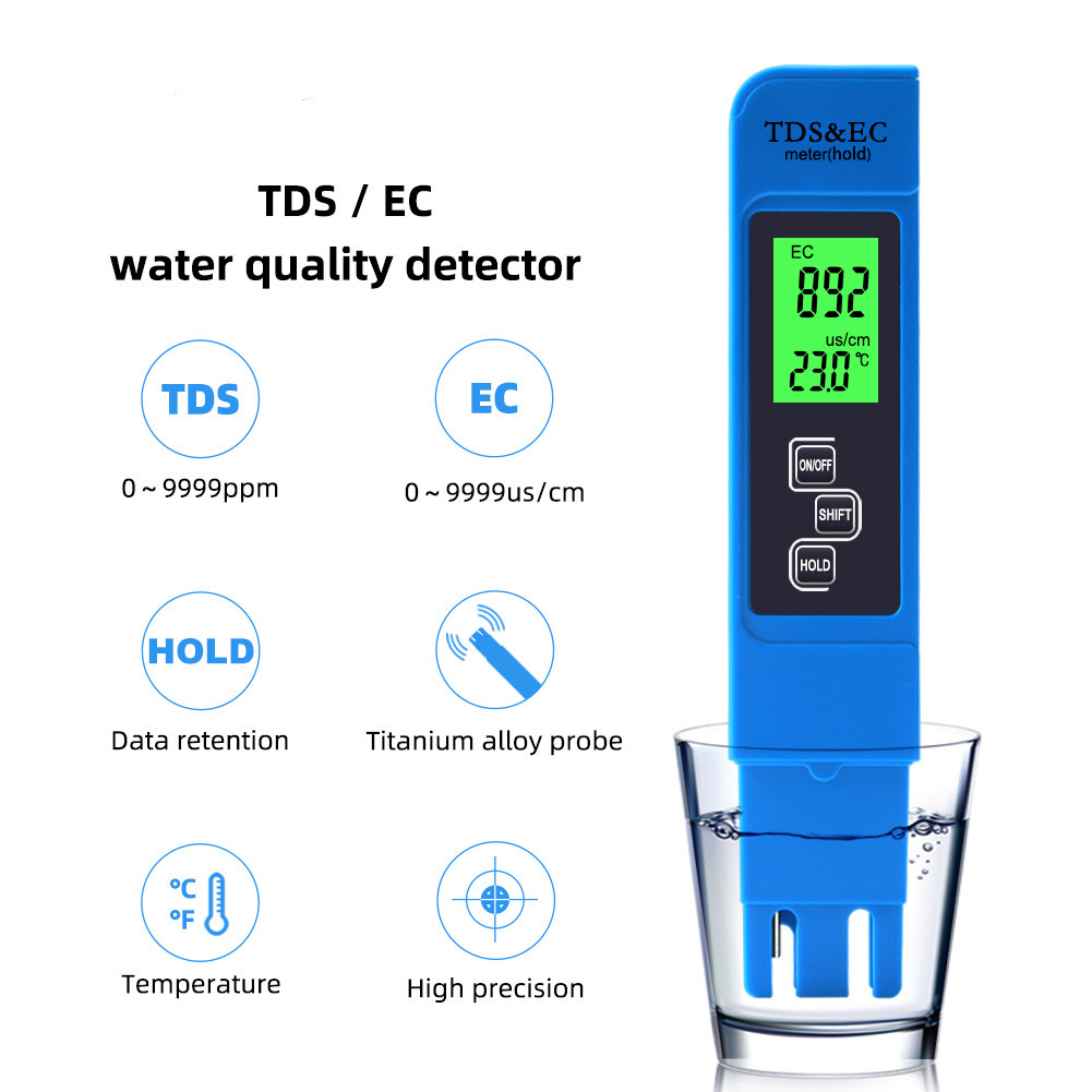EC 테스트 펜 백라이트 TDS & EC 전도도 온도 테스트 펜 EC 테스트 펜 비료 농도 다산 측정 물스토어 가기