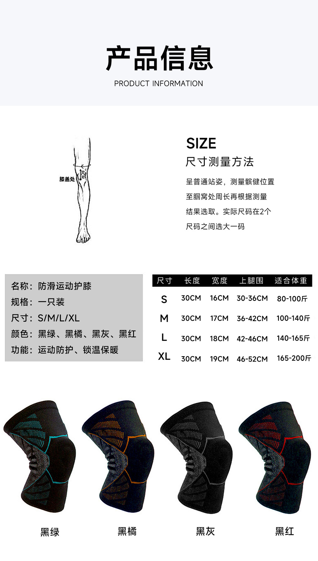 스포츠 무릎 보호대 무릎 보호대 실행 축구 등산 농구 스쿼트 피트니스 지원 실리콘 스프링 무릎 보호대