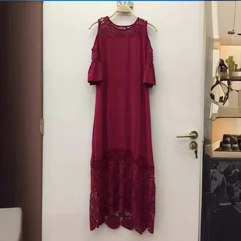 2023 봄과 가을 소원 아마존 폭발 유럽과 미국 크로스 국경 레이스 스티칭 짧은 소매 풀오버 원피스 여성스토어 가기
