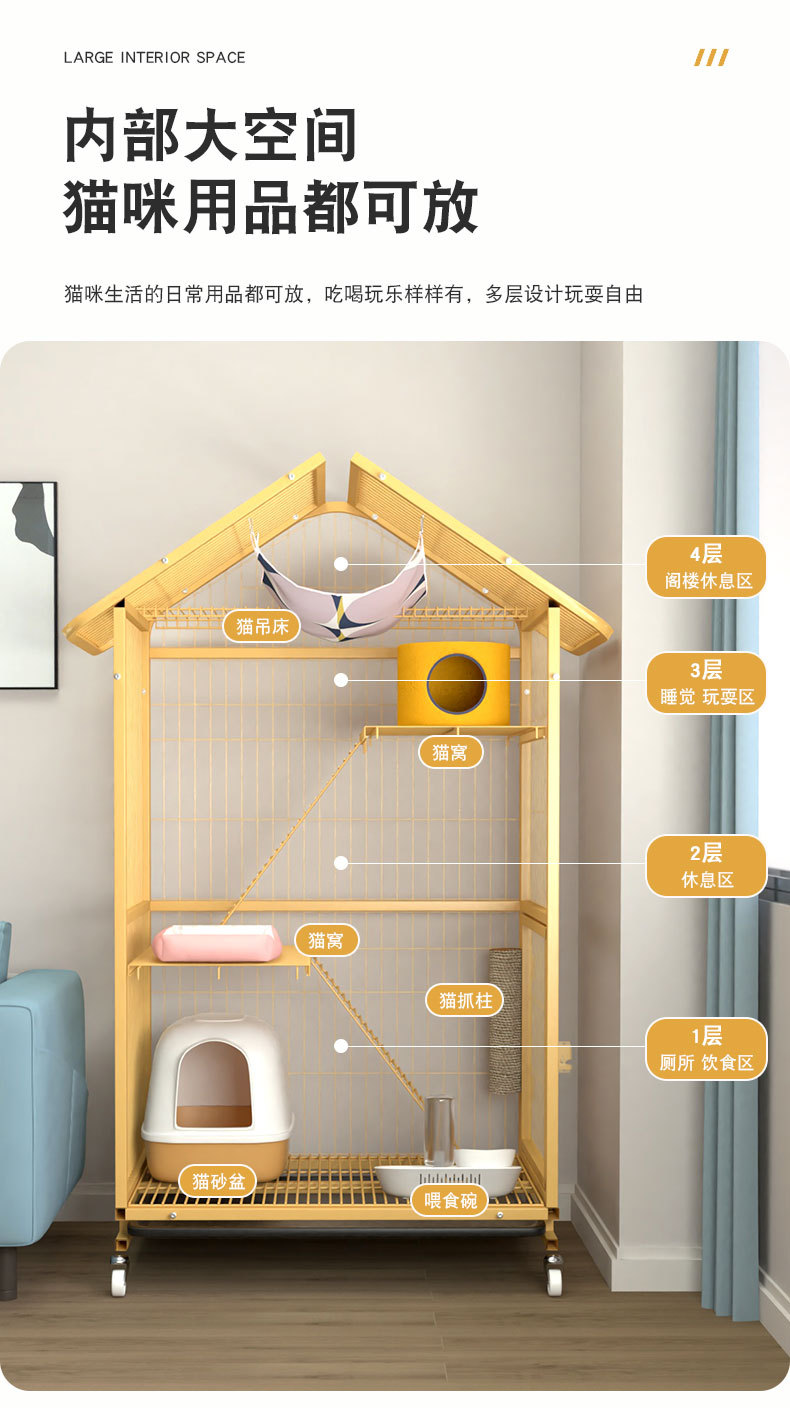 화미 롱타오 캣 케이지, 초대형 자유 공간 고양이 케이지 빌라, 3층 가정용 고양이 집, 고양이 하우스, 고양이 둥지, 고양이 클라이밍 프레임