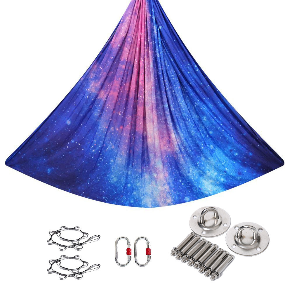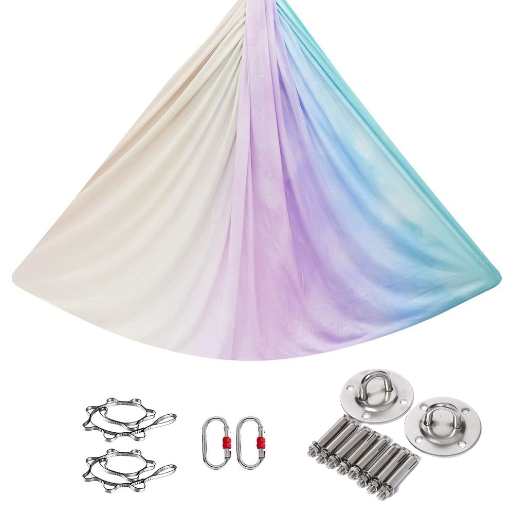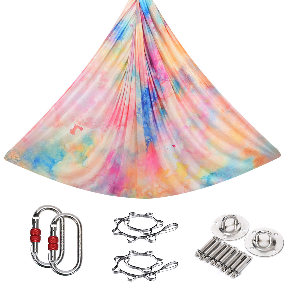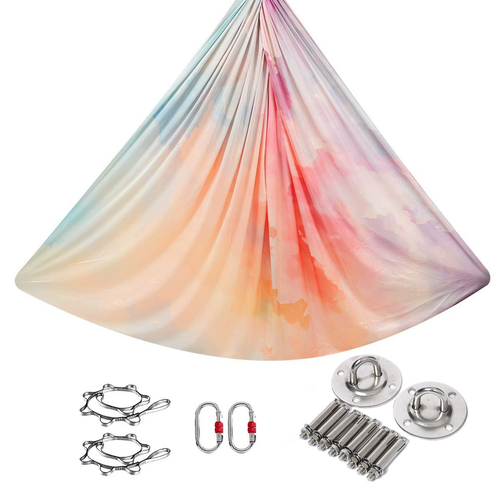 컬러 스트레치 요가 해먹 인쇄 그라디언트 요가 스튜디오 확장 공기 가정용 새틴 슬링 슬링 슬링
