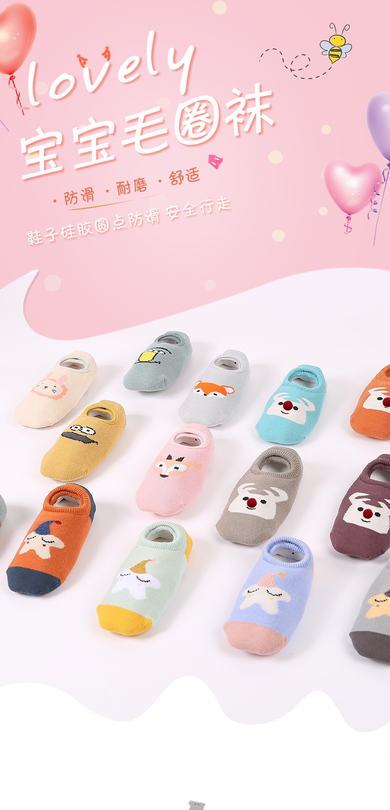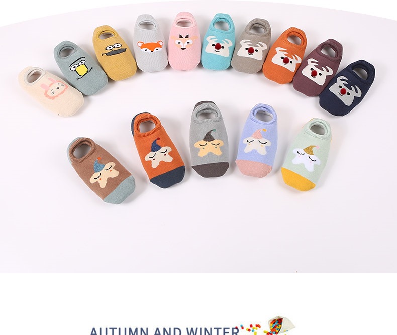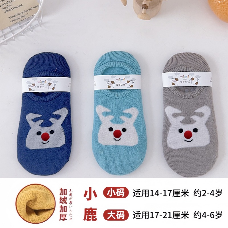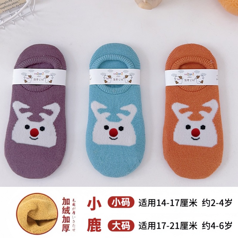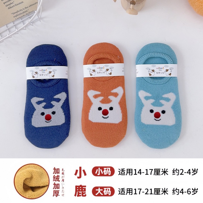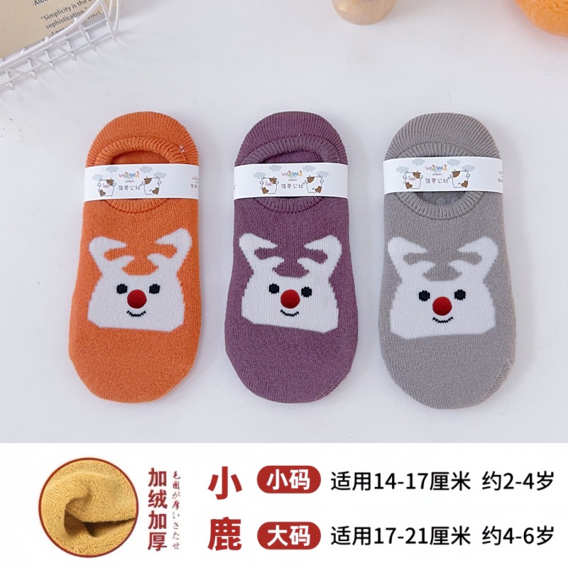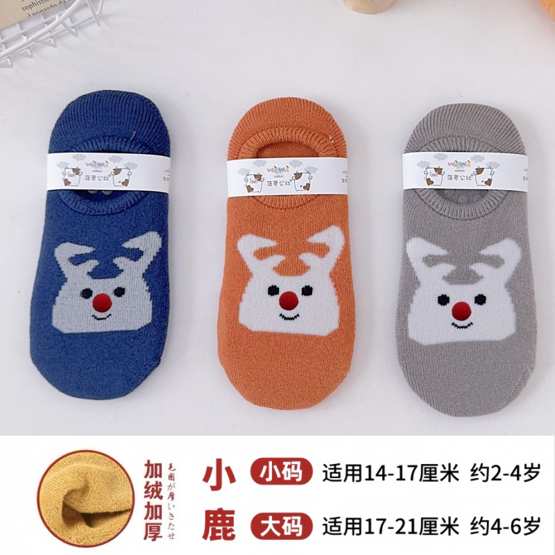 어린이용 바닥 양말, 두꺼운 겨울용 따뜻한 테리 양말, 아기 미끄럼 방지 실내 유아용 양말, 어린이용 만화 눈 양말스토어 가기