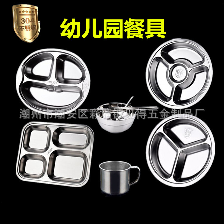 공장 304 스테인레스 라운드 디너 플레이트 유치원 3,4 패스트 푸드 플레이트 매점 학생 어린이 식기