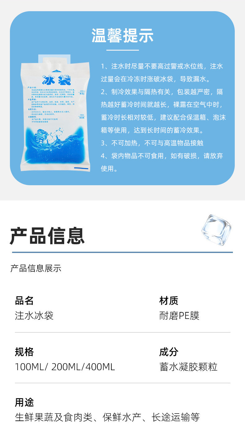 일회용 물주입 아이스팩, 재사용 가능한 냉동 드라이아이스, 신선식품 전용 자흡수 아이스팩, 택배용 냉동팩