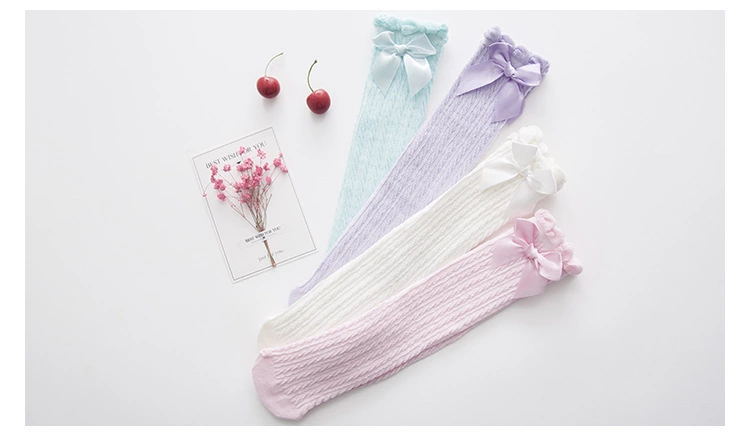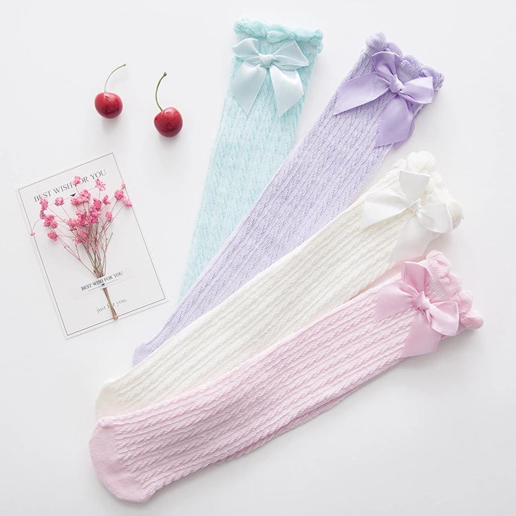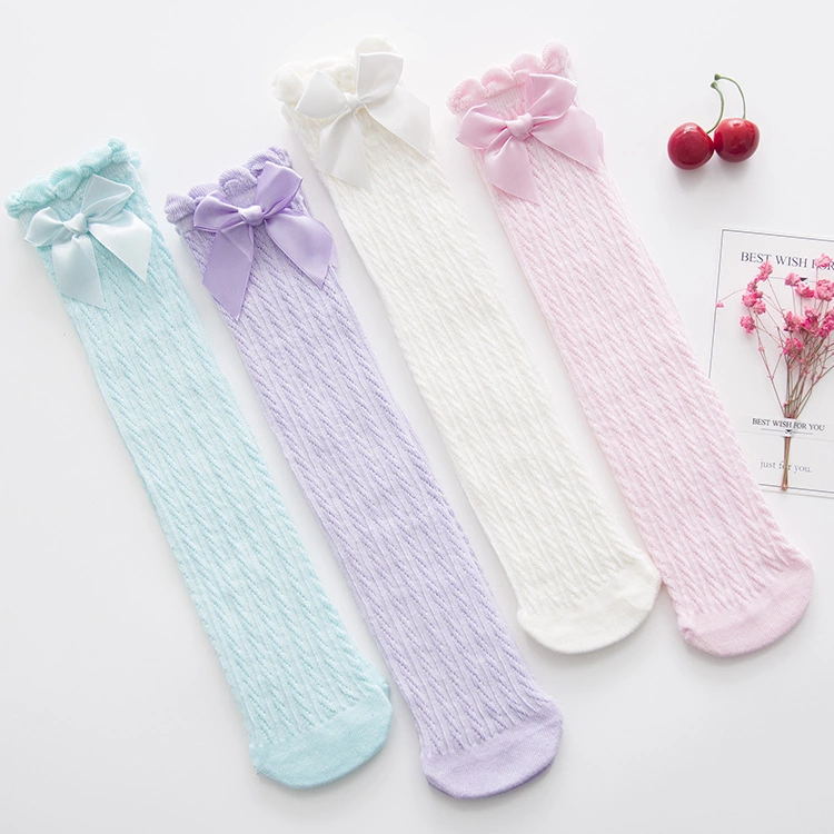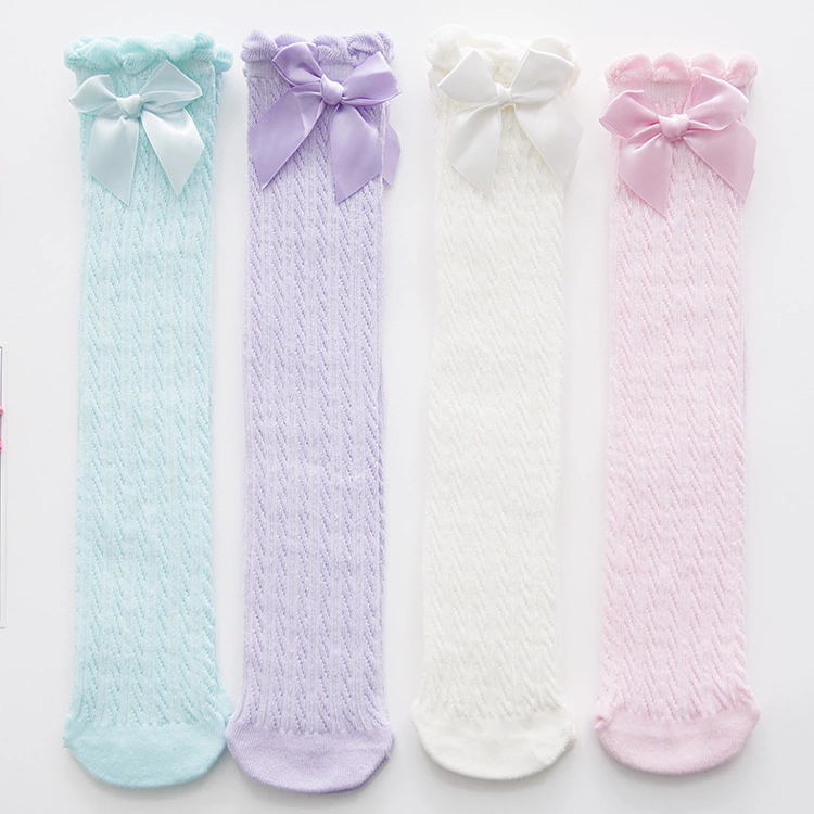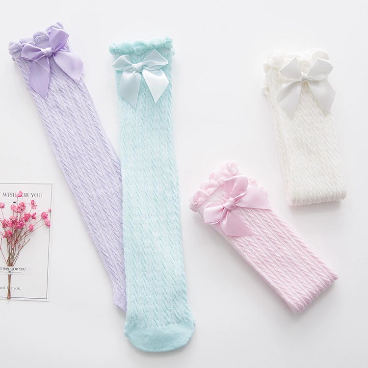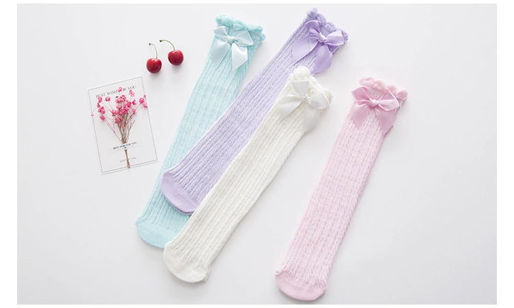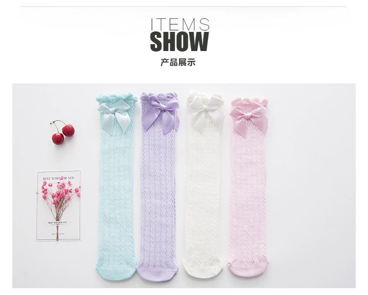 나비 매듭 스트레이트 소녀 메쉬 양말 여름 얇은 레이스 스타킹 달콤한 공주 솔리드 컬러 통기성 무릎 양말