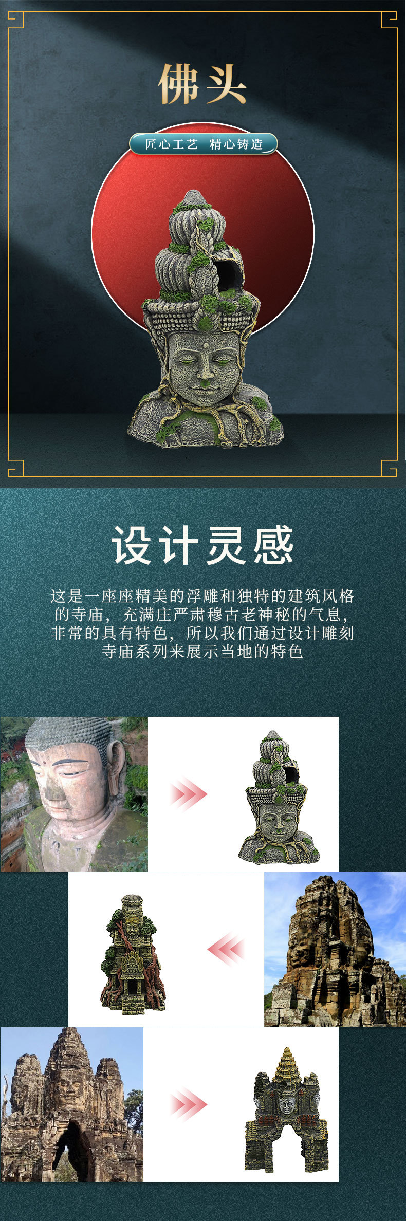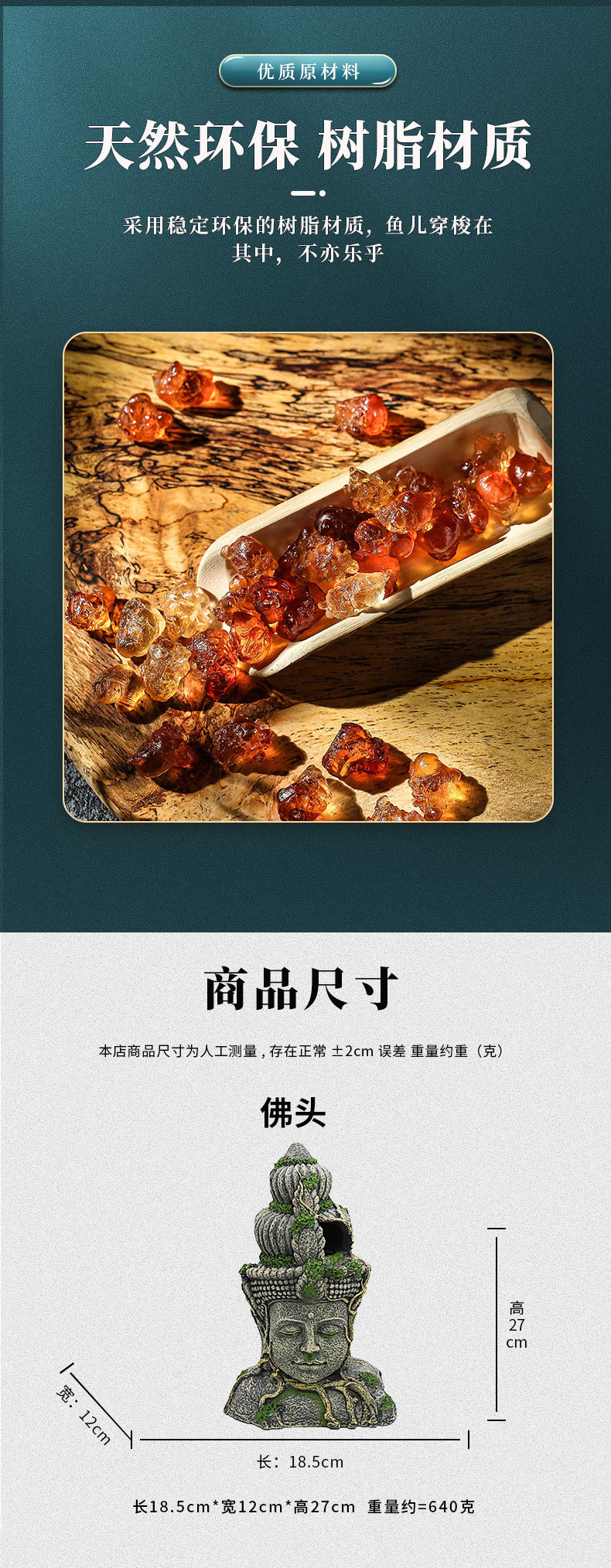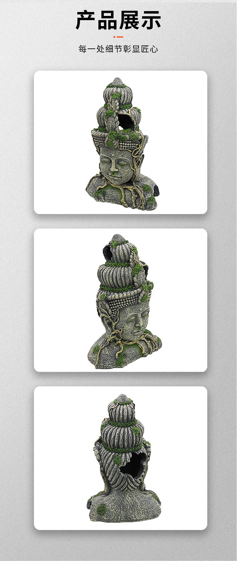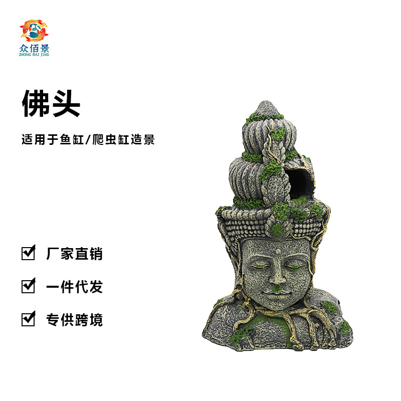 크롤러 상자 수족관 장식 관상용 물고기 탱크 조경 수지 공예 시뮬레이션 보살 불상 머리스토어 가기