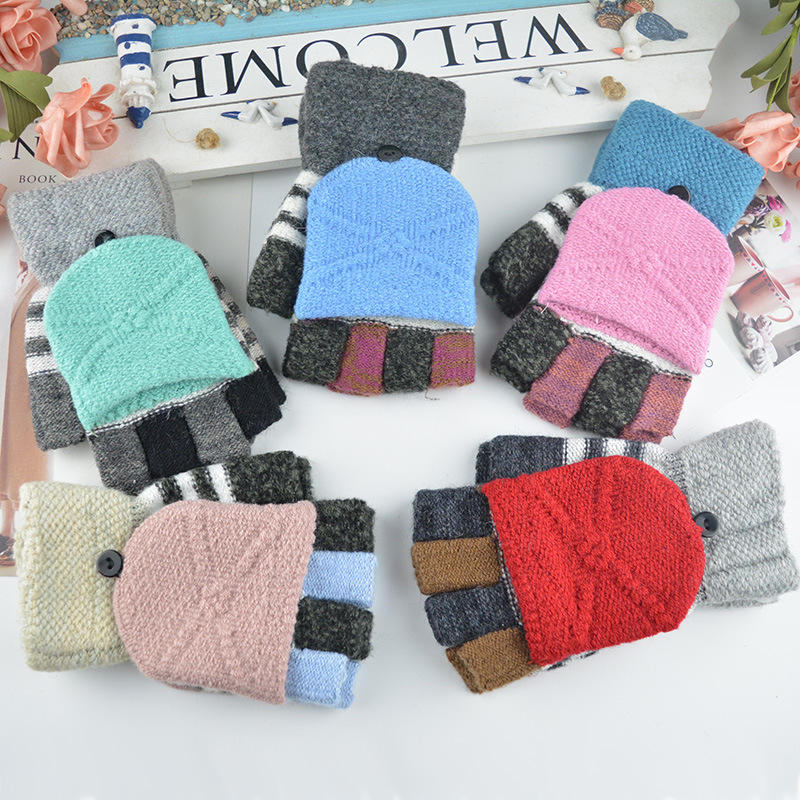 새로운 여자의 반 손가락 플립 따뜻한 장갑 겨울 야외 승마 스포츠 니트 학생 쓰기 장갑 울스토어 가기