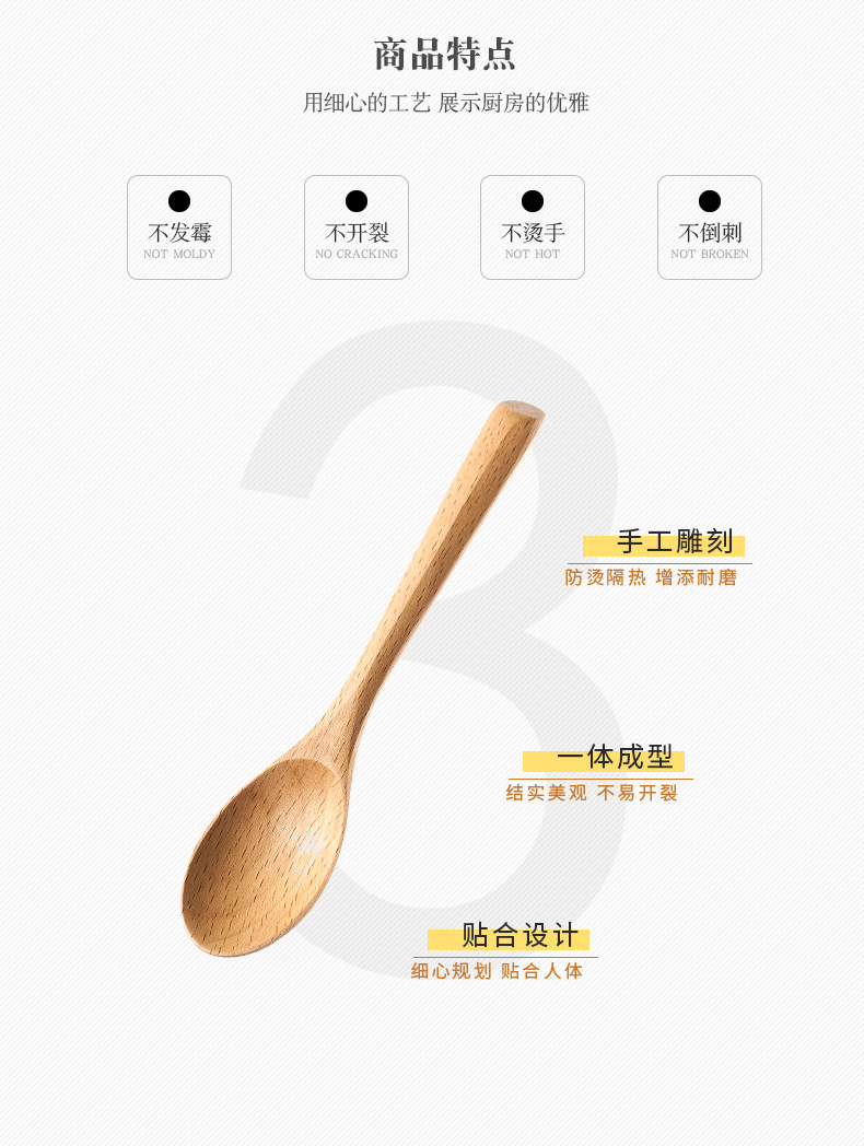 木制品区别于塑料餐具,它大部分部位是由树木的不同部位且人工打磨、木纹、色泽、重量、规格均有微小差别,无法理解与包容的小主还请慎重