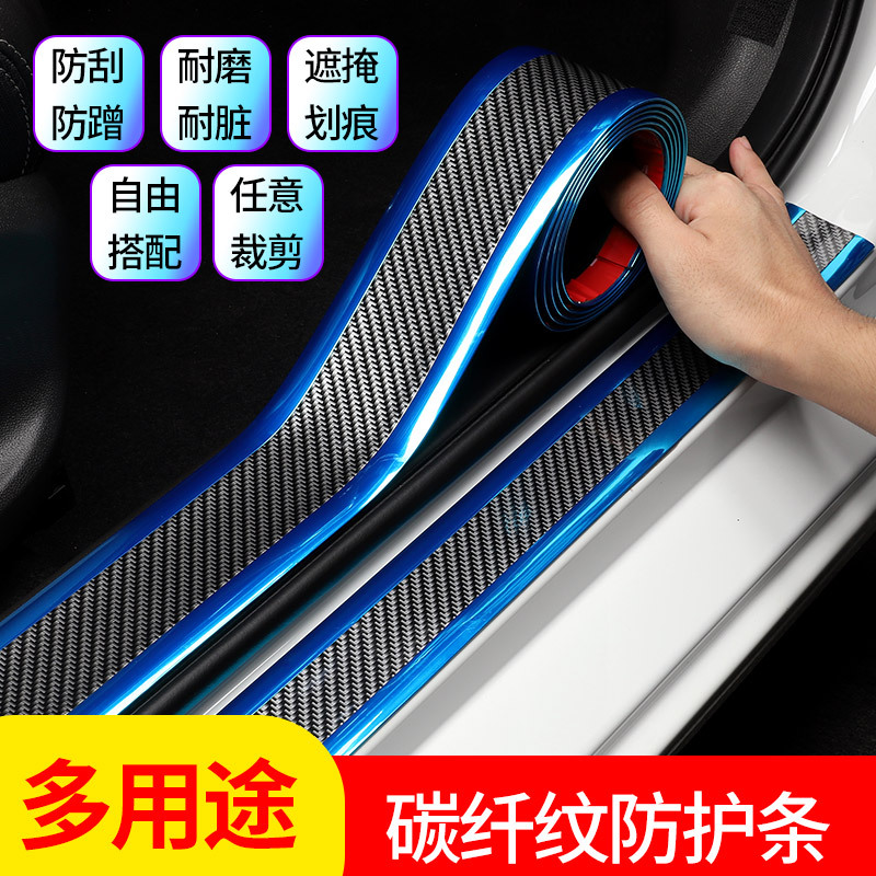 자동차 창틀 스트립 용 스테핑 방지 스티커 범용 수정 페달 트림 스트립 탄소 섬유 곡물 범퍼 도어 에지 충돌 방지 스티커