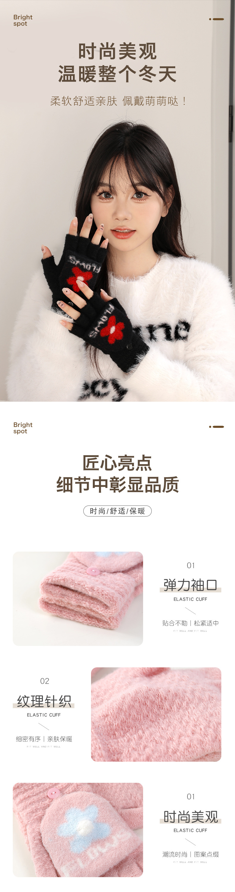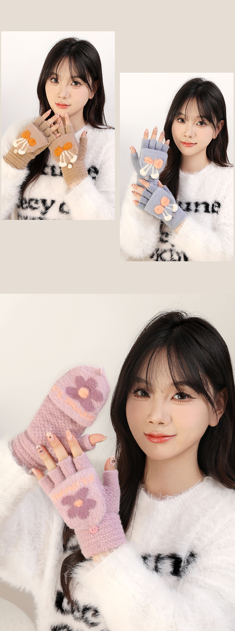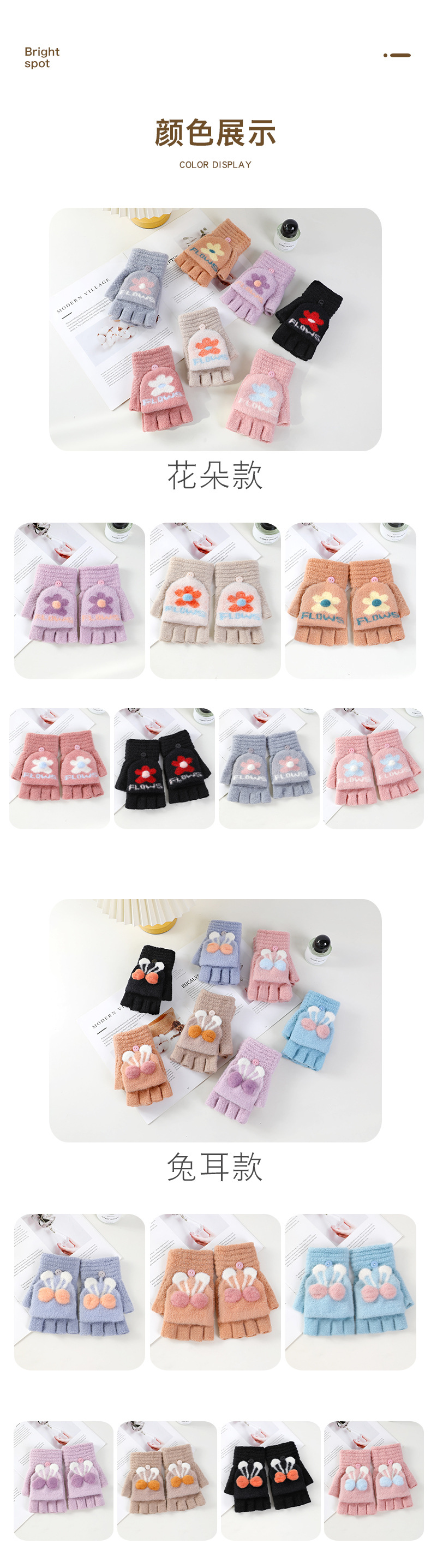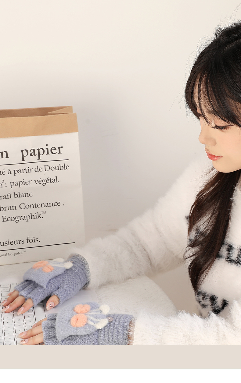 여성용 겨울 장갑, 벨벳 안감, 반장갑, 한국 스타일, 두꺼운 보온, 손가락 노출형 글쓰기 장갑, 학생용 귀여운 장갑 AY