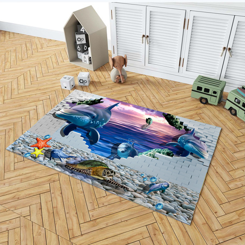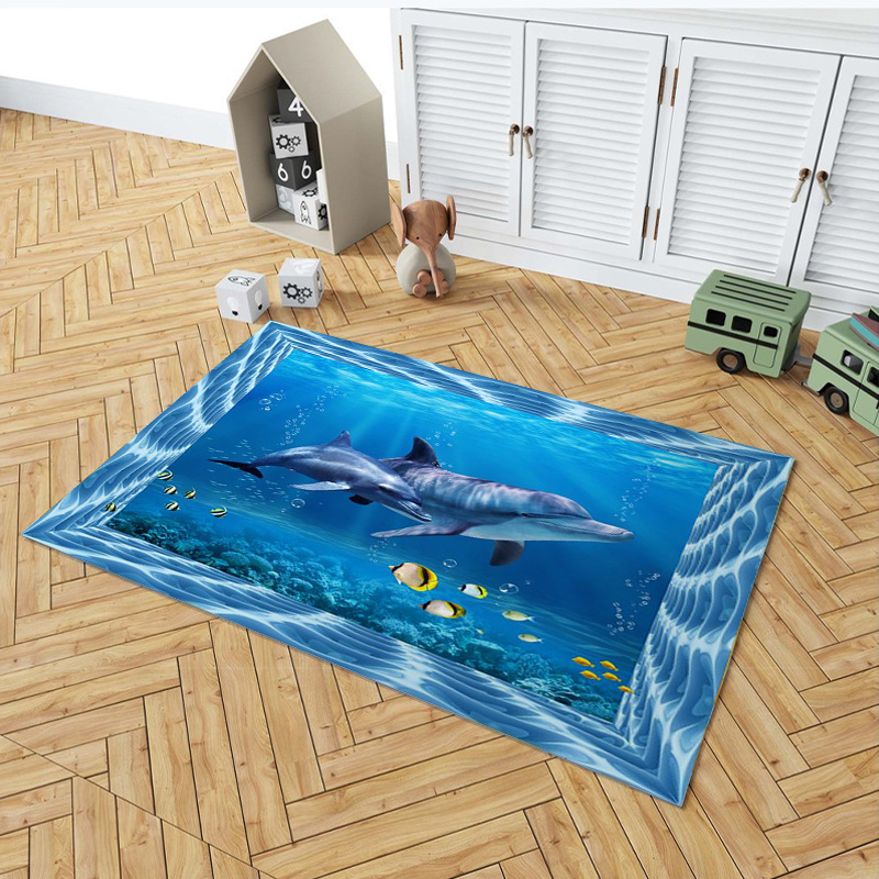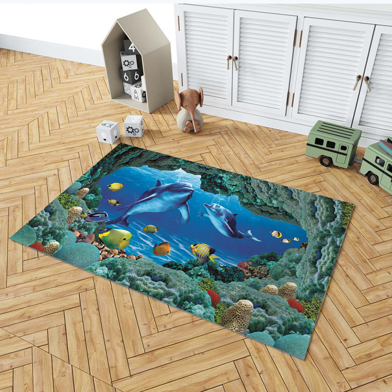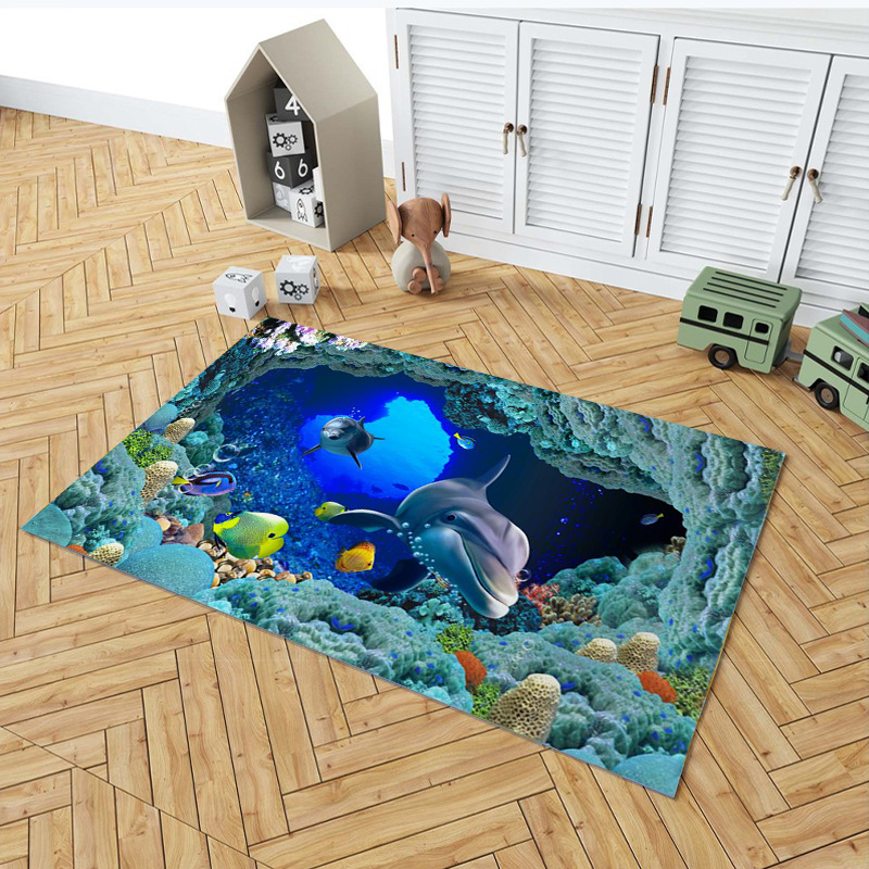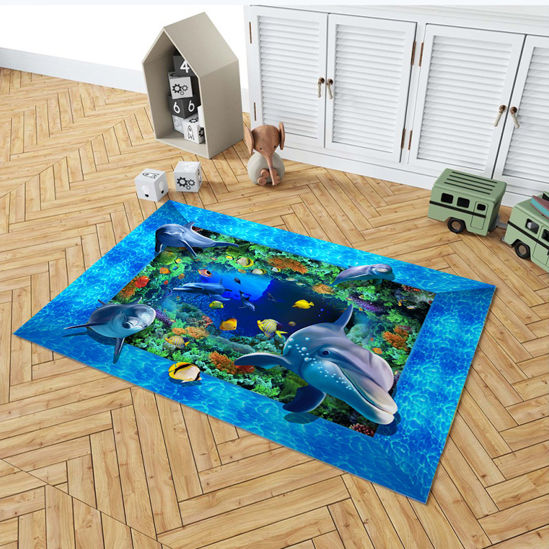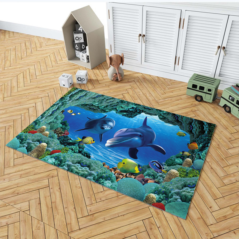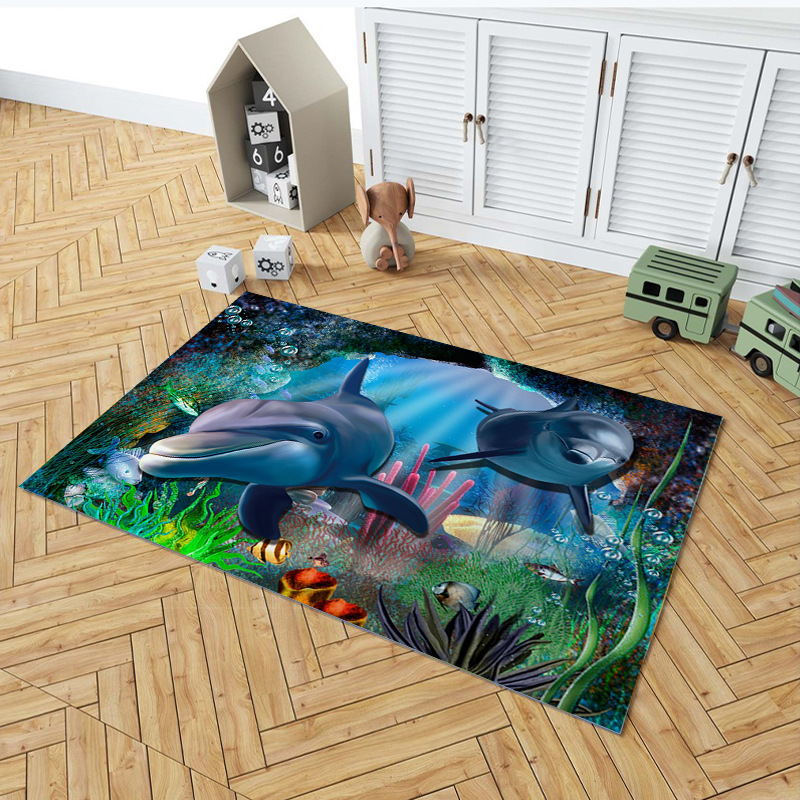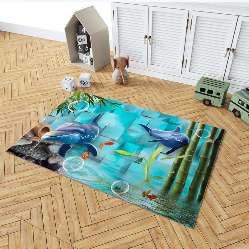 크로스 보더 만화 비전 카펫 홈 거실 3D 돌고래 게임 바닥 매트 어린이 방 크롤링 카펫 침대 옆 바닥 매트스토어 가기