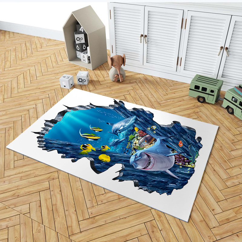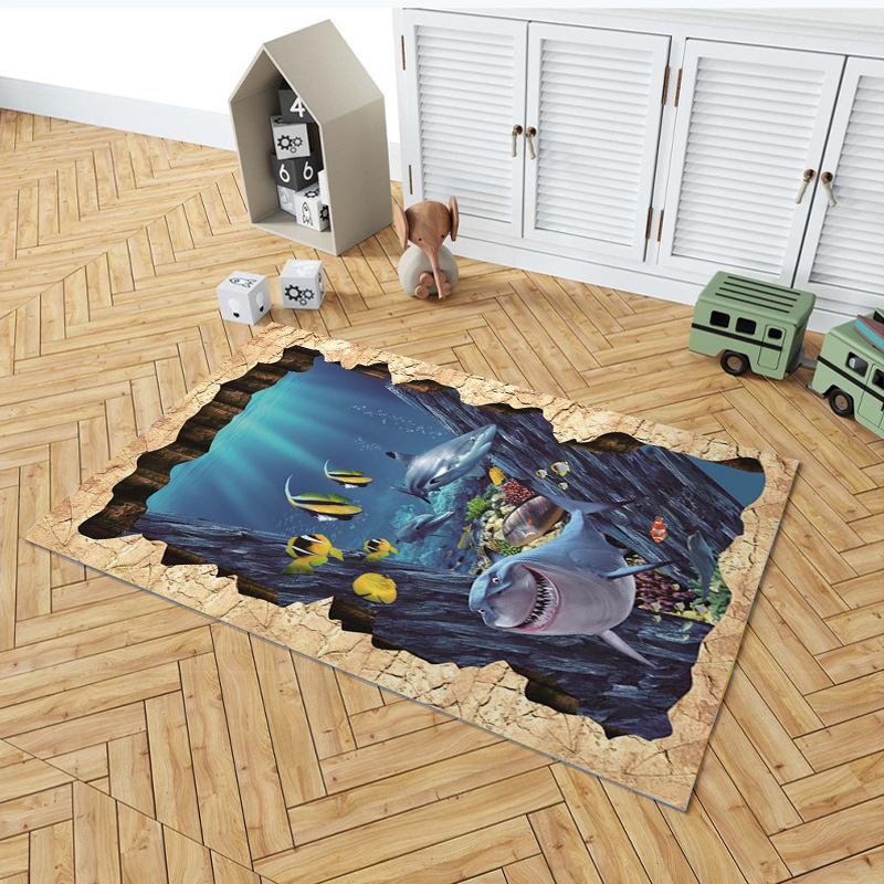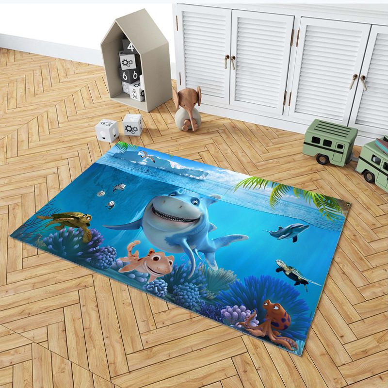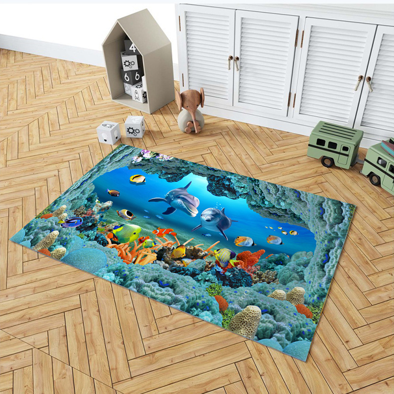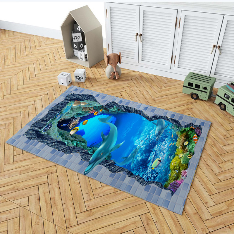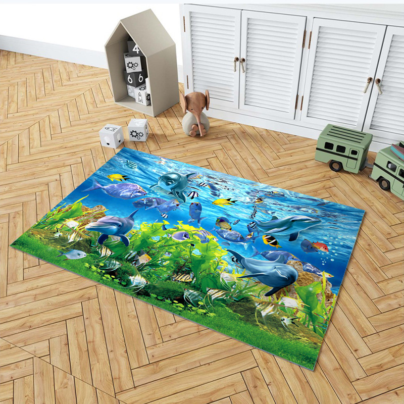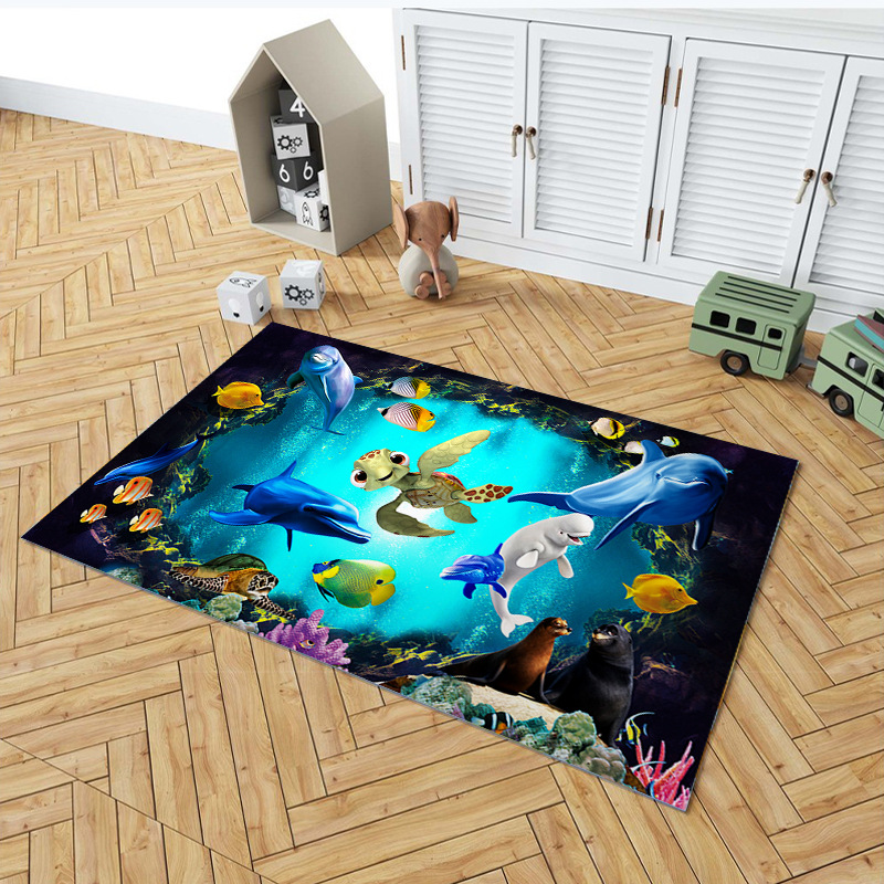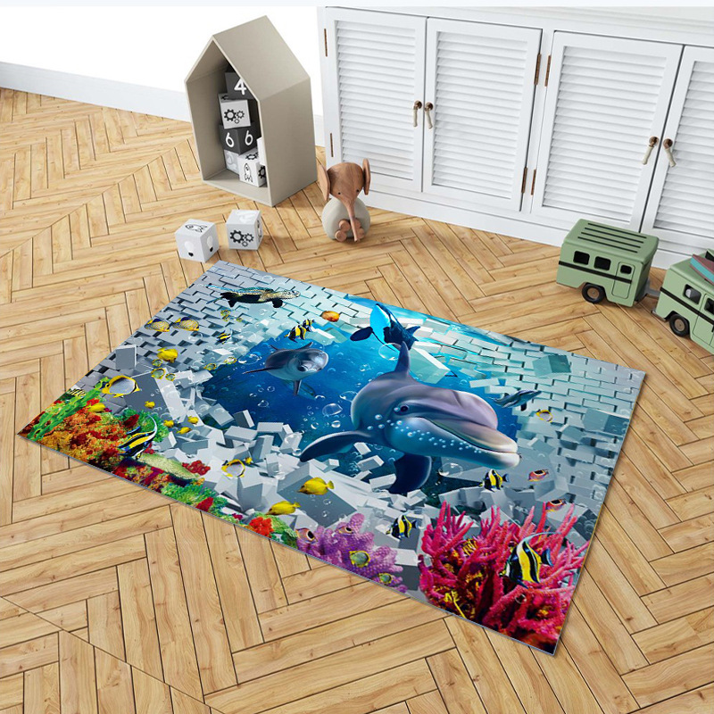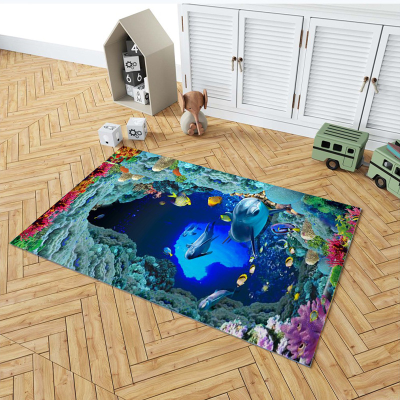 크로스 보더 만화 비전 카펫 홈 거실 3D 돌고래 게임 바닥 매트 어린이 방 크롤링 카펫 침대 옆 바닥 매트스토어 가기