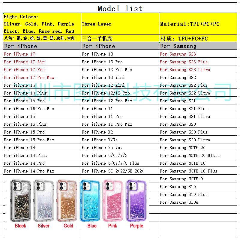 三合一液体流沙防摔手机壳 加厚!
