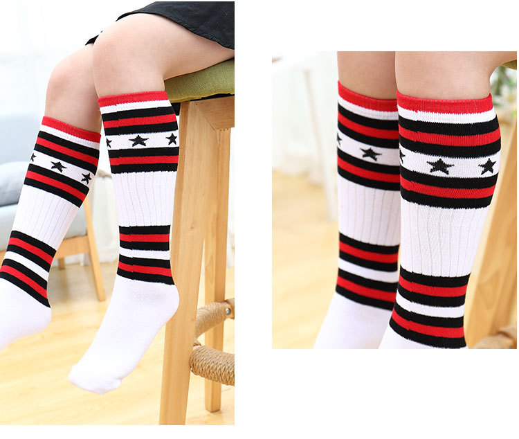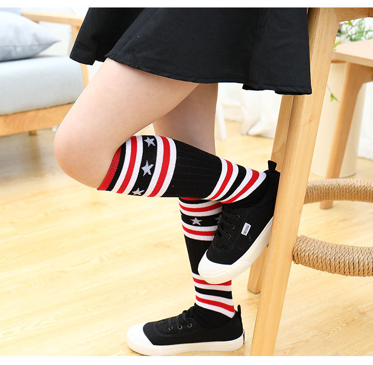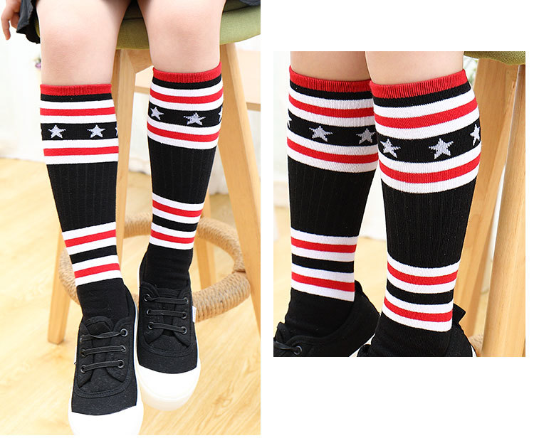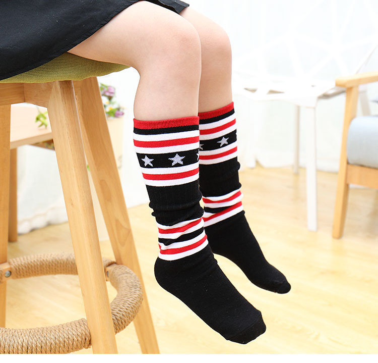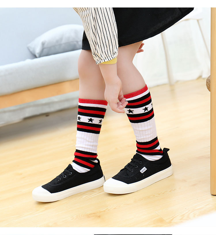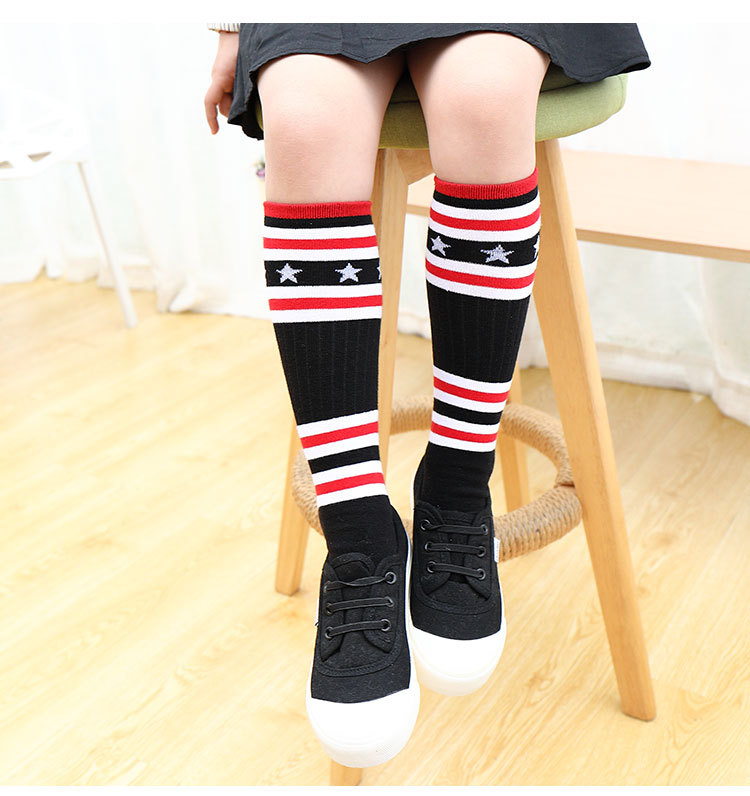 어린이 중간 길이 스타킹 봄과 가을 무지개 줄무늬 스타킹 소녀 높은 스타킹 무릎 높이 학생 스포츠 축구 양말