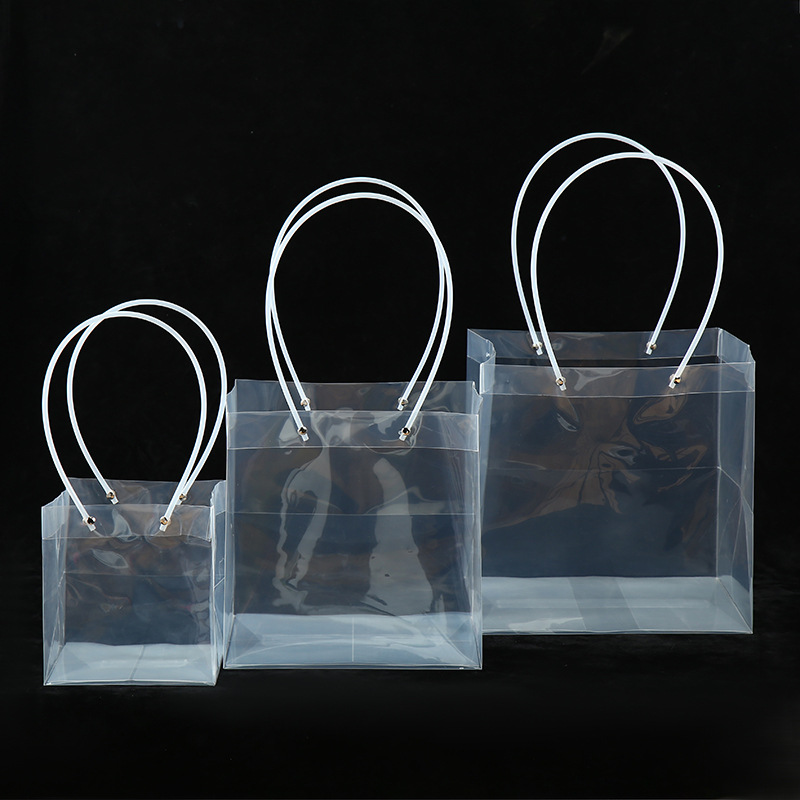 새로운 사각 PP 투명 핸드백 선물 신선한 꽃다발 포장 가방 케이크 손 선물 가방 뒤 선물 가방스토어 가기