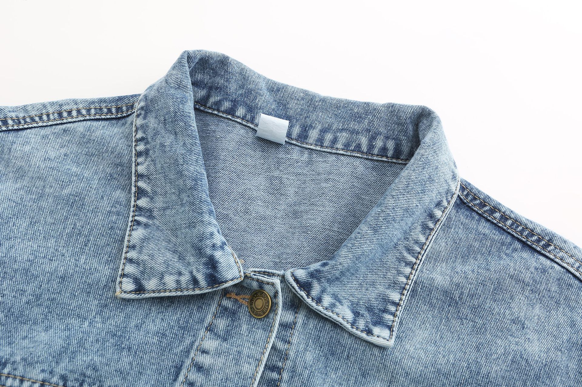 재고 있음-20056 유럽과 미국에서 인기 있는 여성복, 레트로 캐주얼 루즈핏 빅포켓 데님 자켓