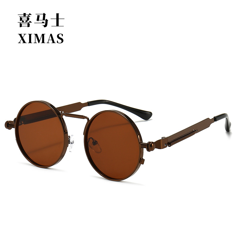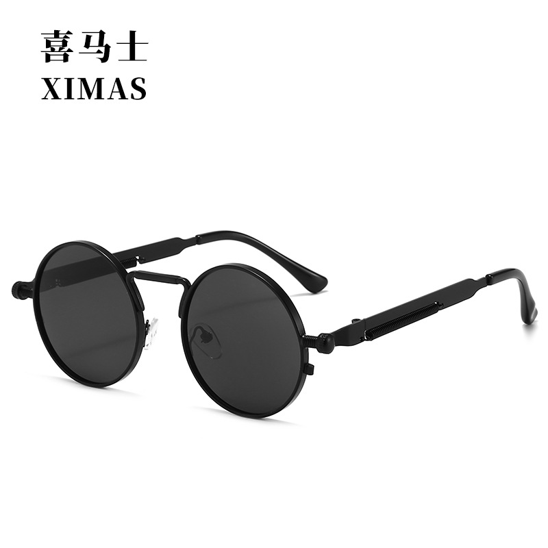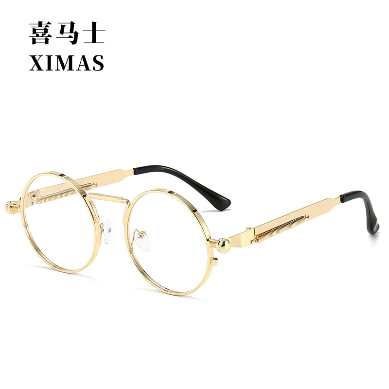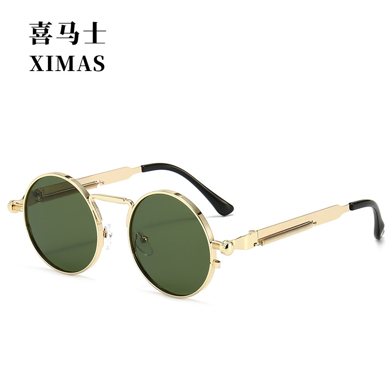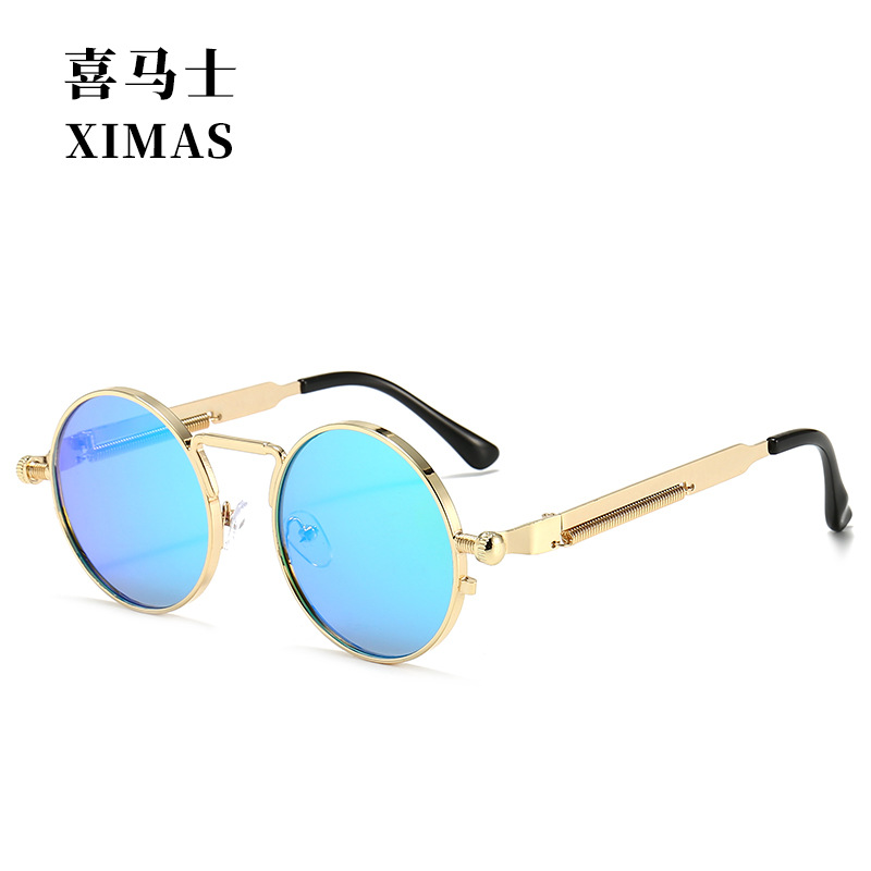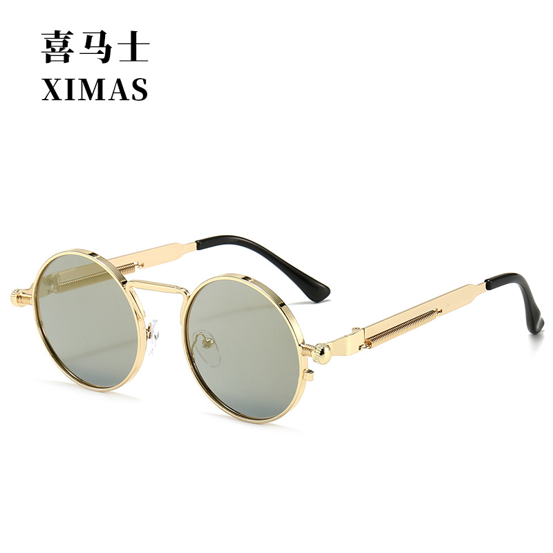 새로운 스타일 프린스 미러 라운드 스팀 펑크 선글라스 레트로 선글라스 봄 안경 다리 금속 얇은 측면 너무 안경