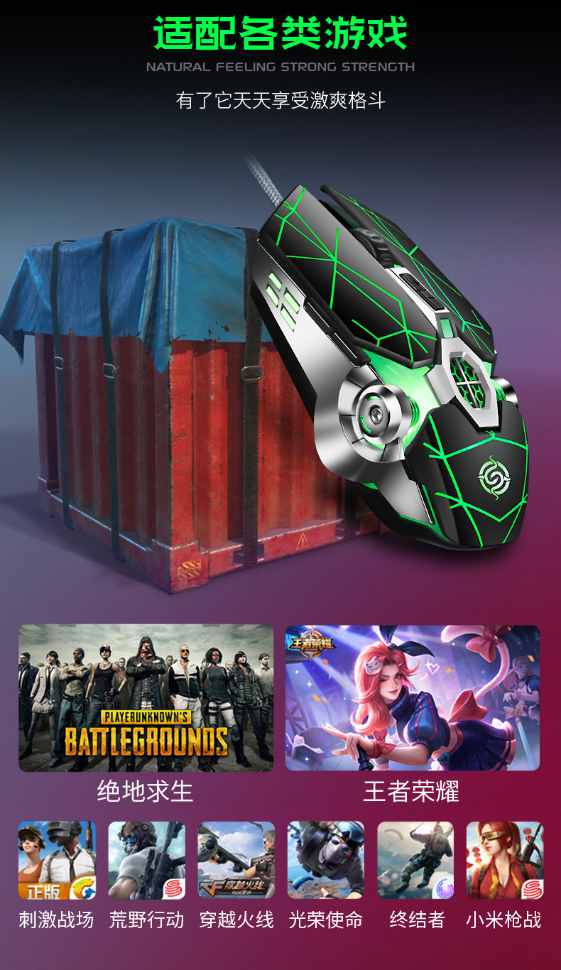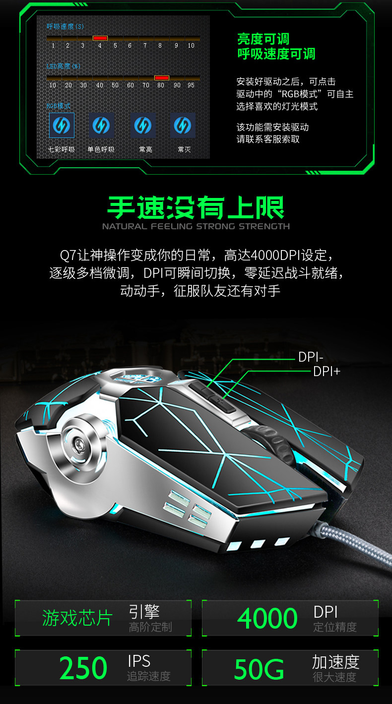 바이퍼 Q7 USB 유선 노트북 게임 7D 매크로 프로그래밍 데스크탑 컴퓨터 DPI 속도 조절 전기 경쟁 기계식 마우스