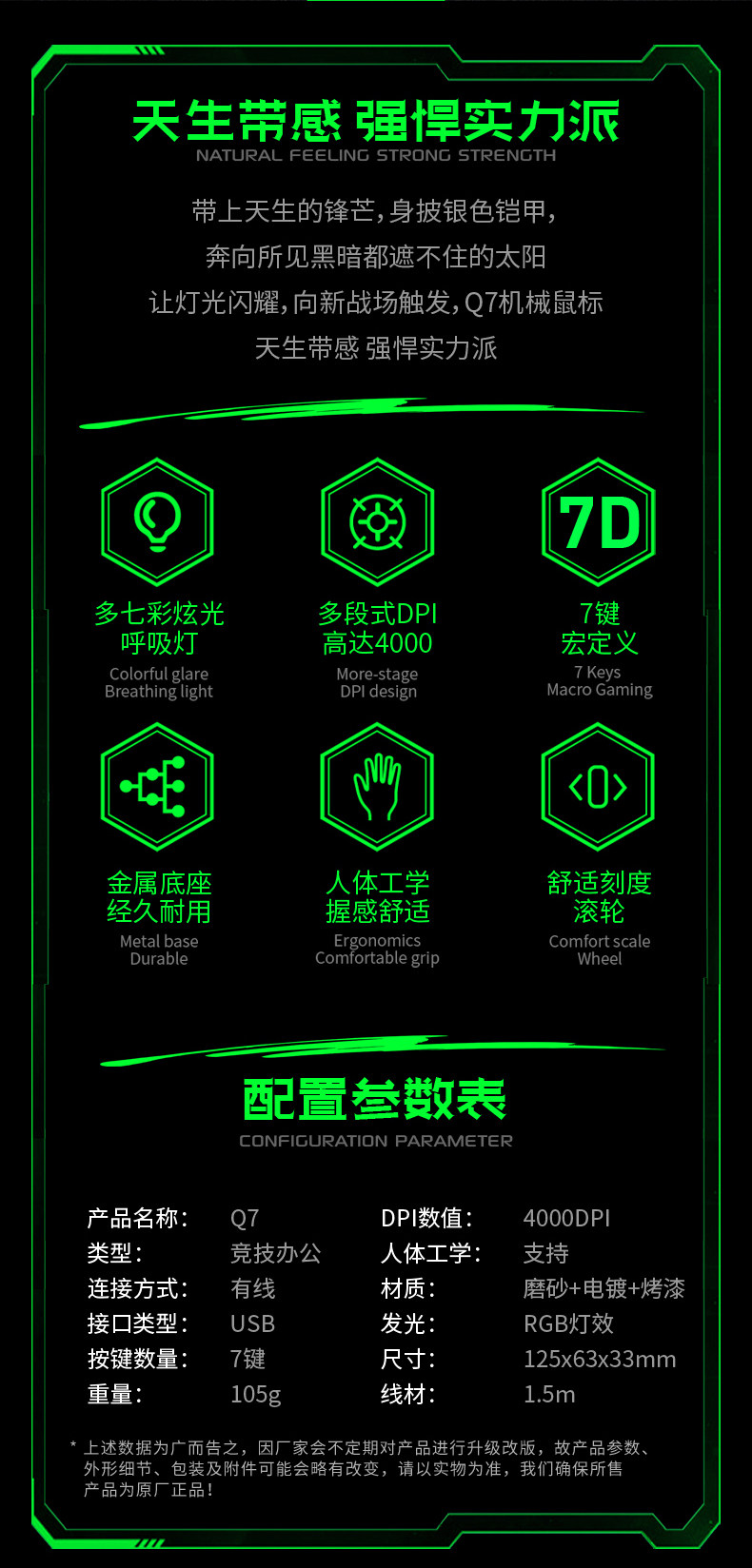 바이퍼 Q7 USB 유선 노트북 게임 7D 매크로 프로그래밍 데스크탑 컴퓨터 DPI 속도 조절 전기 경쟁 기계식 마우스스토어 가기