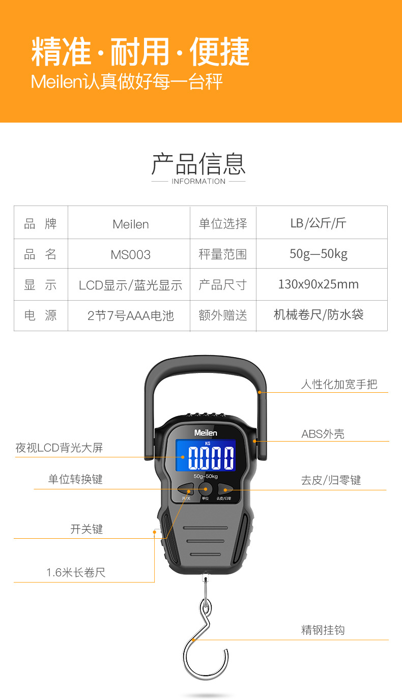 도매 전자 휴대용 저울 가정용 휴대용 채소 및 낚시용 저울 50kg 택배용 스프링 저울 해외 인기 판매