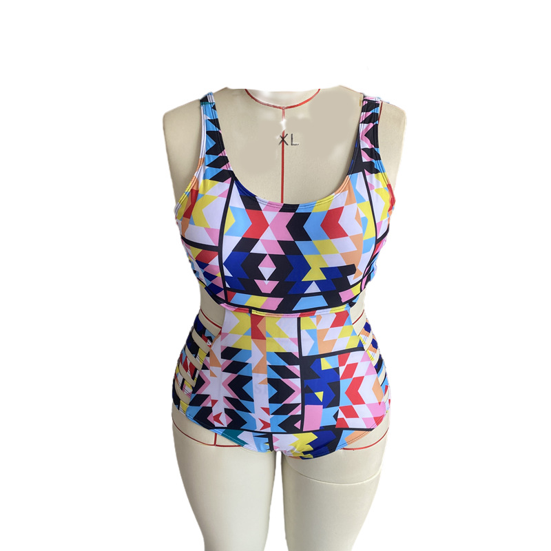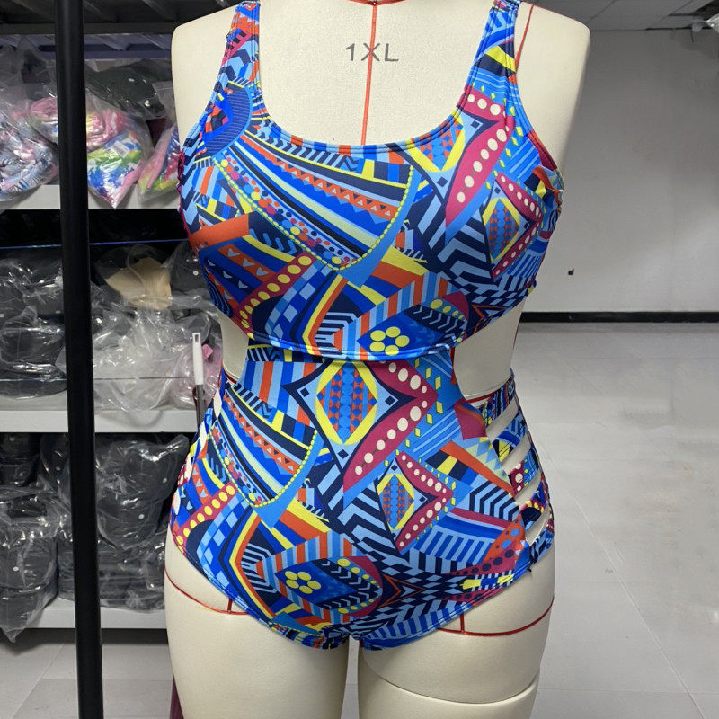 크로스 보더 새로운 유럽과 미국 여성의 플러스 사이즈 원피스 수영복 인쇄 플레이트 벨트 섹시 AliExpress 플러스 뚱뚱한 비키니 수영복