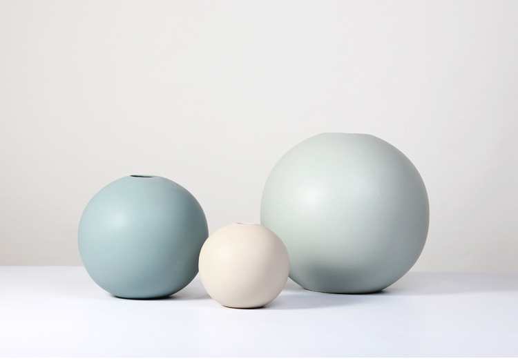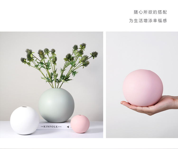 세라믹 원형 구형 꽃병 꽃 모란디 색상 북유럽 인 소프트 모델 룸 장식 도매