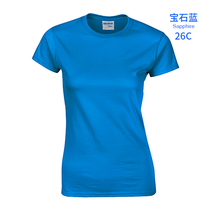 Gildan 76000L 블랭크 솔리드 컬러 퓨어 코튼 여성용 반팔베이스 셔츠 티셔츠 수업복 작업복 인쇄 로고