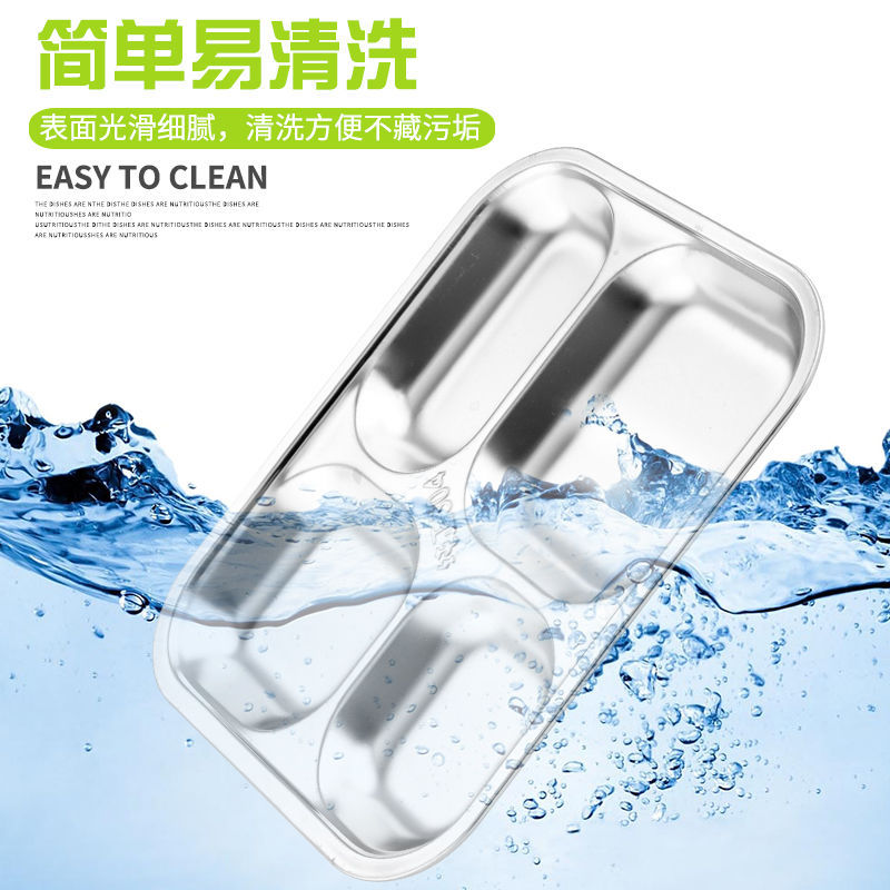 4、由于不锈钢餐盘生产的时候都要经过机器拉伸,部分地方会沾到少许的污渍,使用前可用温 水加入稀释醋浸泡三十分钟后,充分清洗。