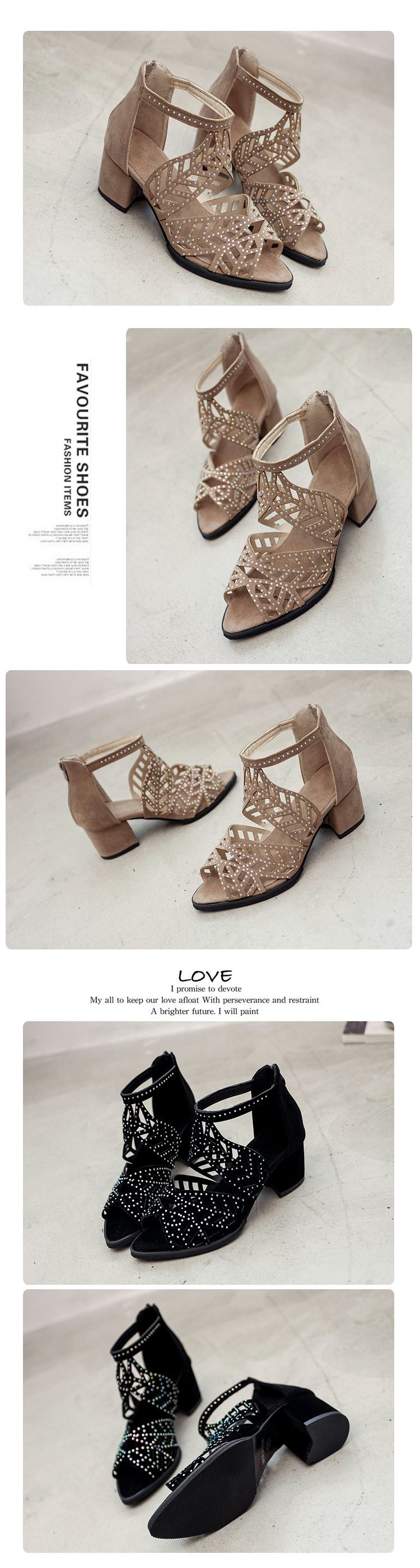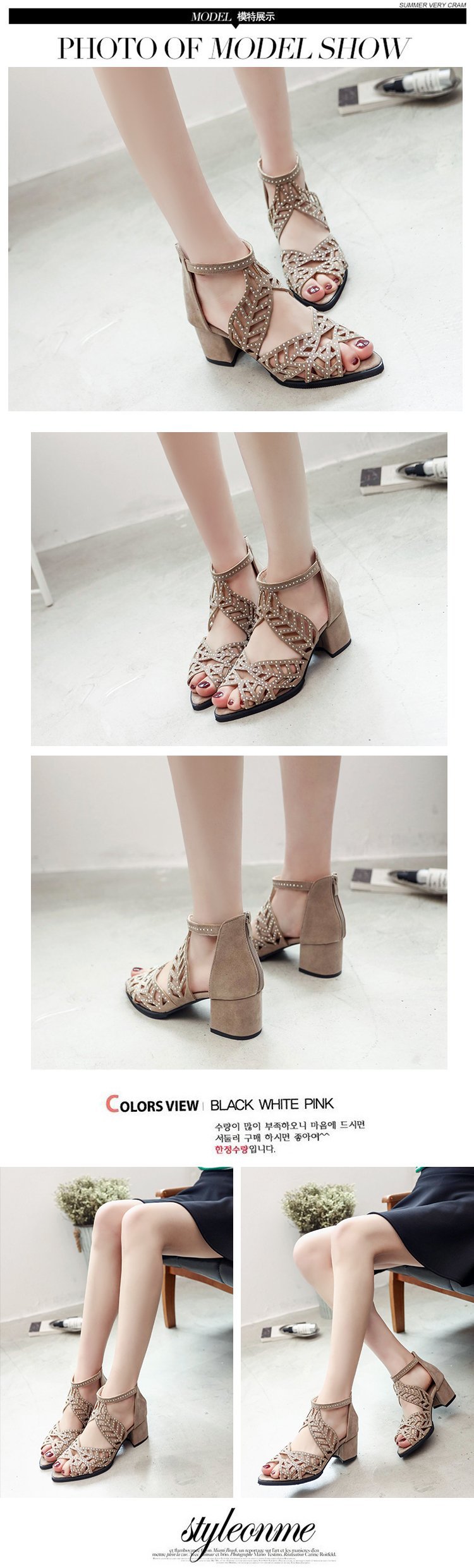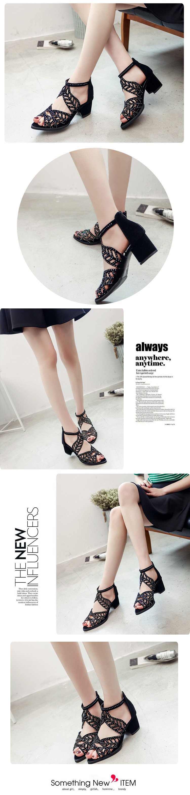 물고기 발가락 샌들 여성 신발 여름 새로운 유럽과 미국 기질 하라주쿠 통기성 중공 블록 힐 지퍼 하이힐 플러스 사이즈스토어 가기