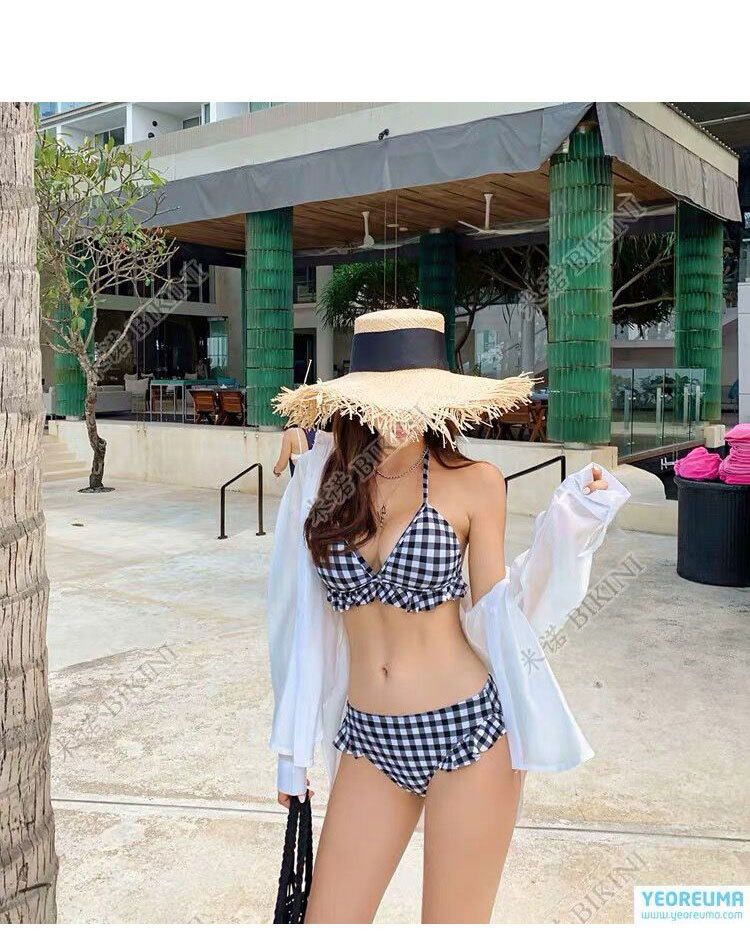 수영복 여성용 한국식 뉴 하이 웨이스트 스플릿 비키니 in 스타일 가슴 푸시업 슬림핏 여성스토어 가기
