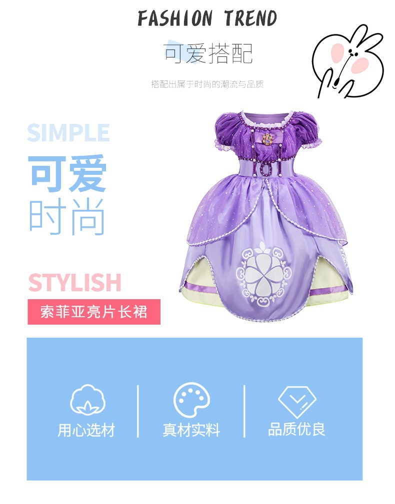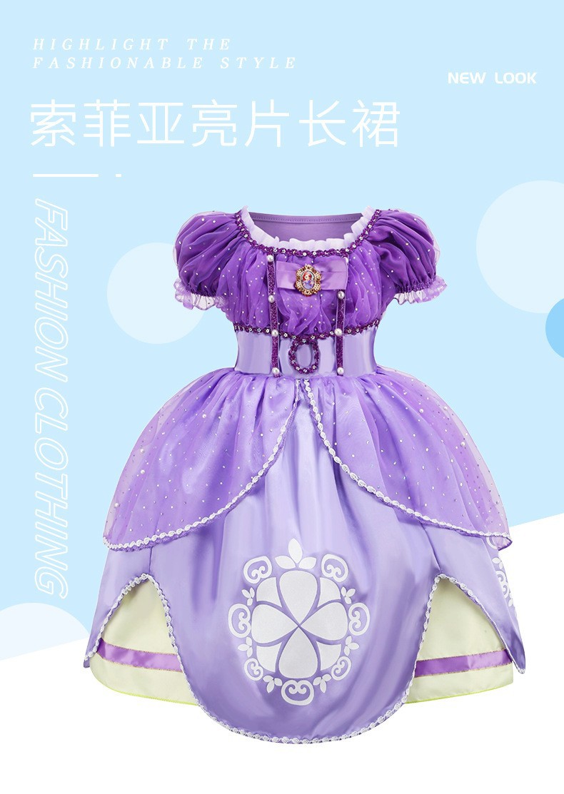 소피아 스팽글 공주 원피스 긴 머리 공주 원피스 Lepei 소녀 소피아 원피스 어린이 의상