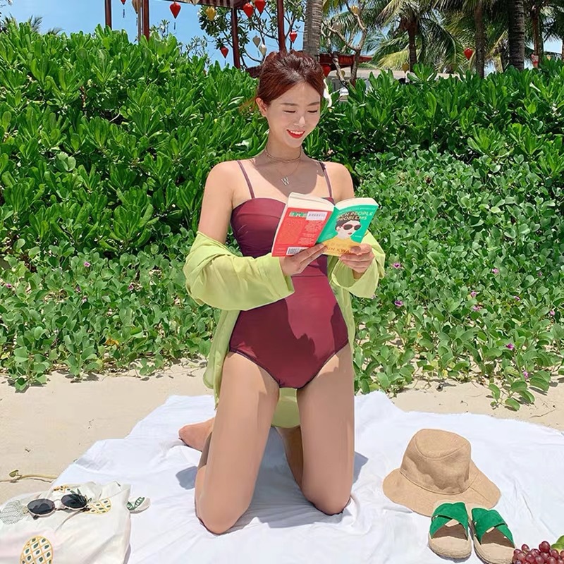 한국 원피스 삼각형 비키니 섹시한 노란색 흰색 스트랩 배꼽 커버 슬림 등이없는 수영복스토어 가기