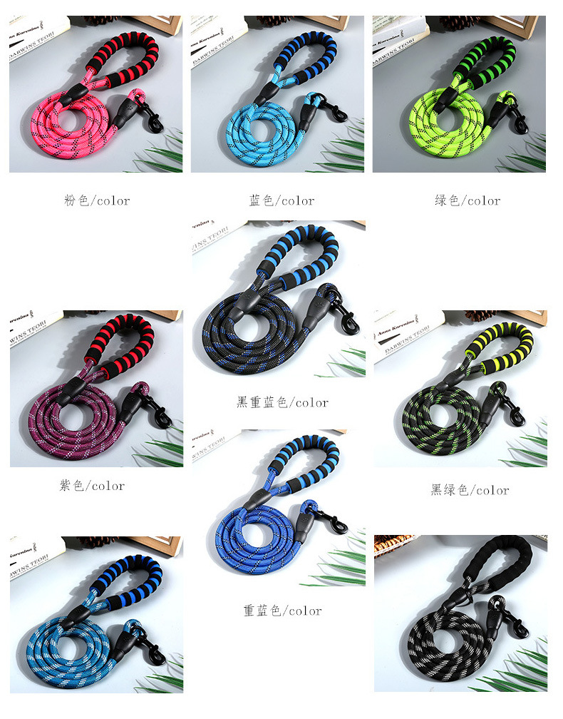 국경 간 손잡이 애완 동물 가죽 끈 안전 벨트 나일론 라운드 로프 중형 및 대형 개 가죽 끈 체인 개 가죽 끈