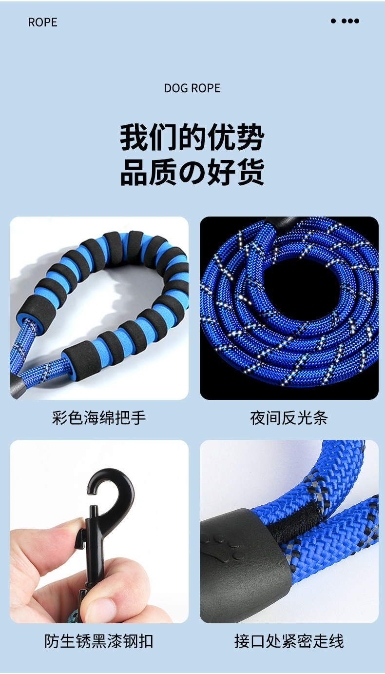 국경 간 손잡이 애완 동물 가죽 끈 안전 벨트 나일론 라운드 로프 중형 및 대형 개 가죽 끈 체인 개 가죽 끈스토어 가기