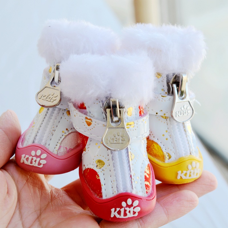겨울 신상품 애완동물 신발 따뜻한 공장 다이렉트 개 신발 안에 두꺼운 벨벳으로 신발을 관리하기 쉬운 극세사 가죽스토어 가기