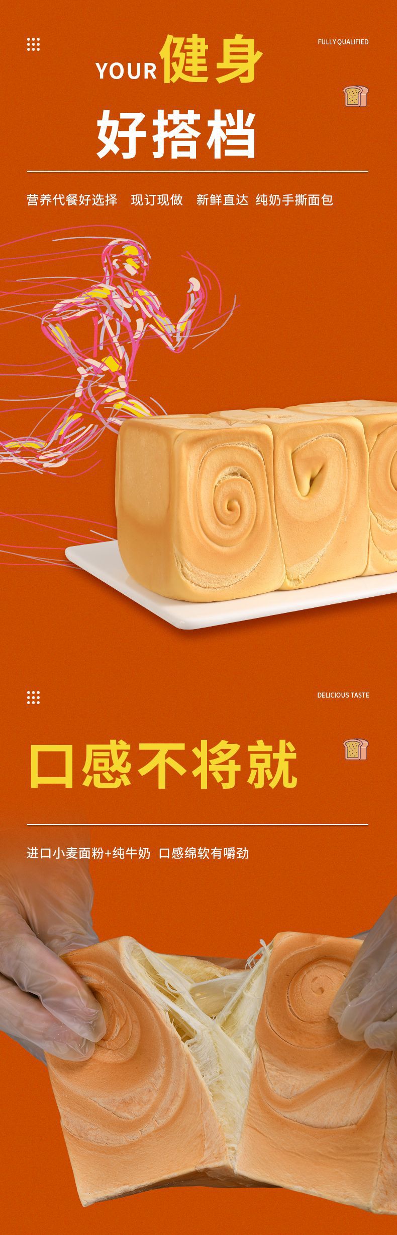 【佳莲娜415G手撕面包*10个/箱】面包店学生党早代餐美团抖音爆款