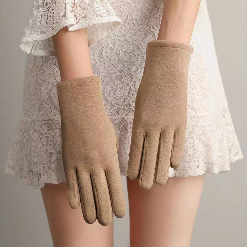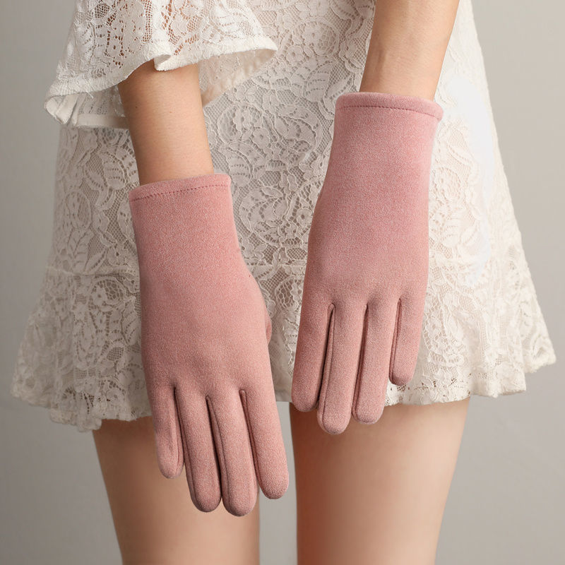 우아한 상징 크로스 보더 핫 세일 클래식 여성의 비 반전 벨벳 4 버튼 기모 두꺼운 사이클링 터치 스크린 따뜻한 장갑