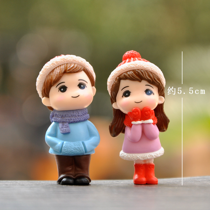 겨울 사랑 노래 커플 인형 장식품 귀여운 소년 소녀 심장 인형 데스크탑 케이크 장식