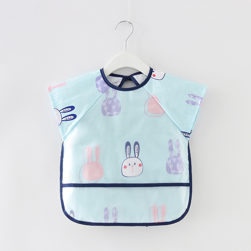 这款罩衣是免洗的,前面一层EVA防水层,防水防油,一擦即净,吃饭时候非常适合!!EVA采用纯度非常高,很柔软的,不是别家那种手感很硬的哦!