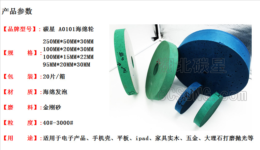具有丰富、均匀的微气孔,有超强的弹性、韧性、吸水性;强度高、可塑性强、锋利耐磨,自锐性好,干湿磨效果理想。