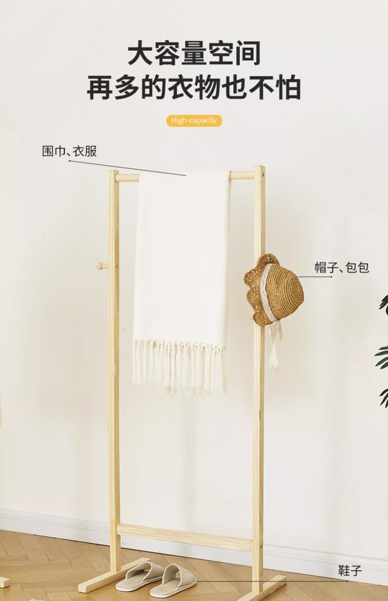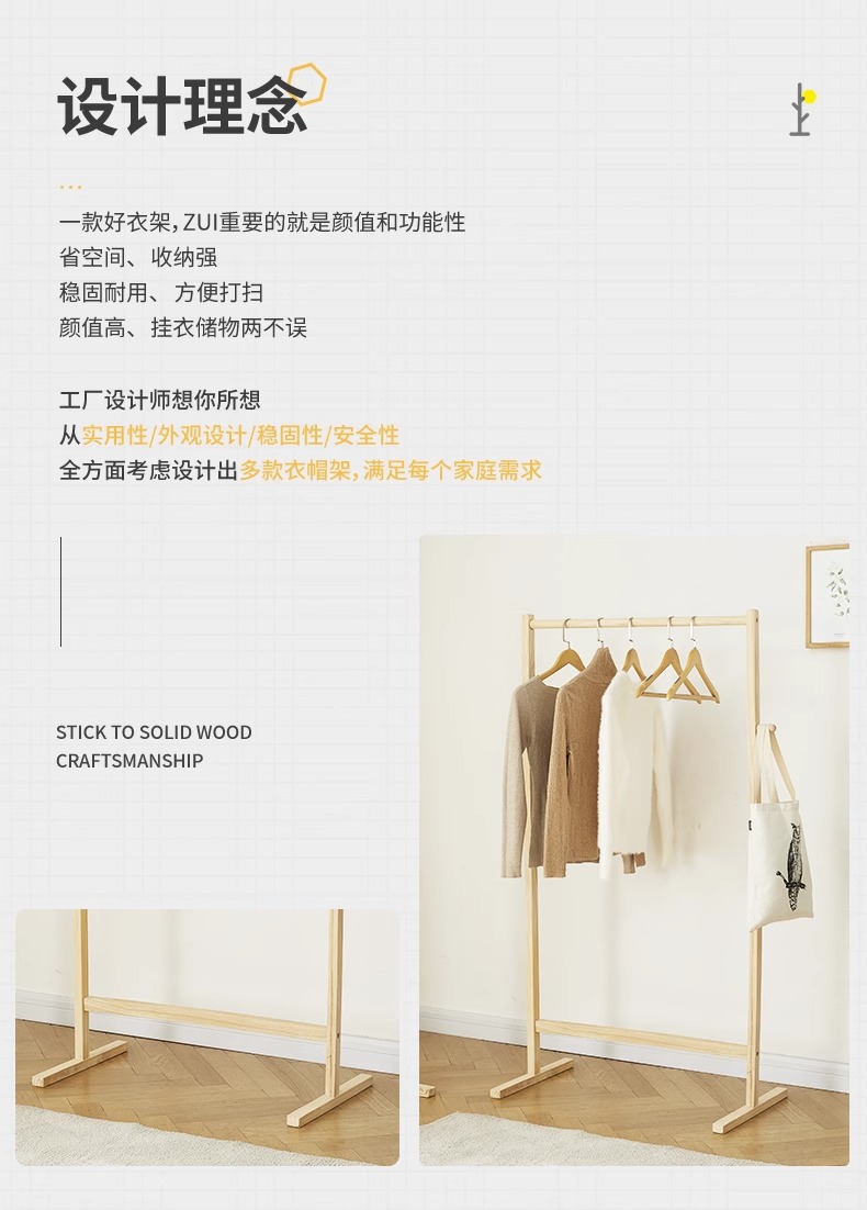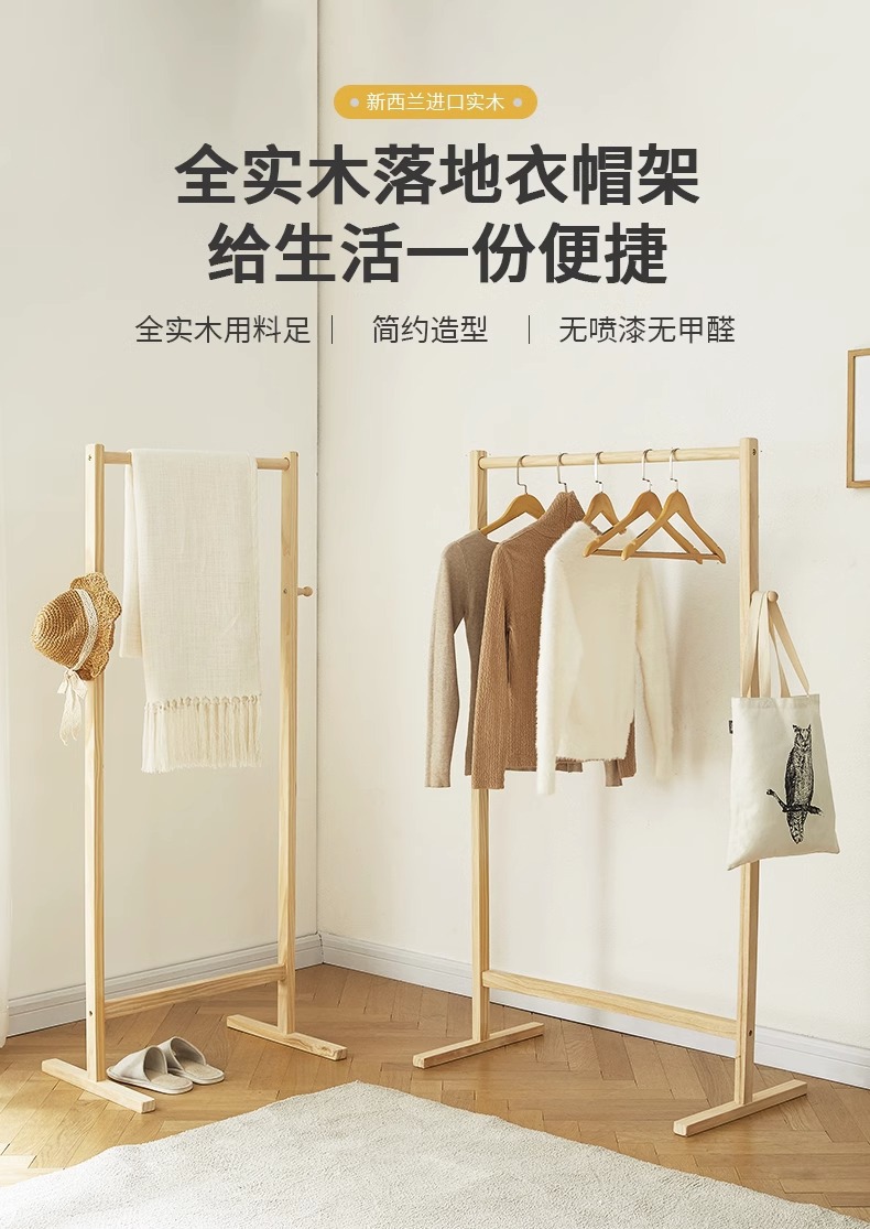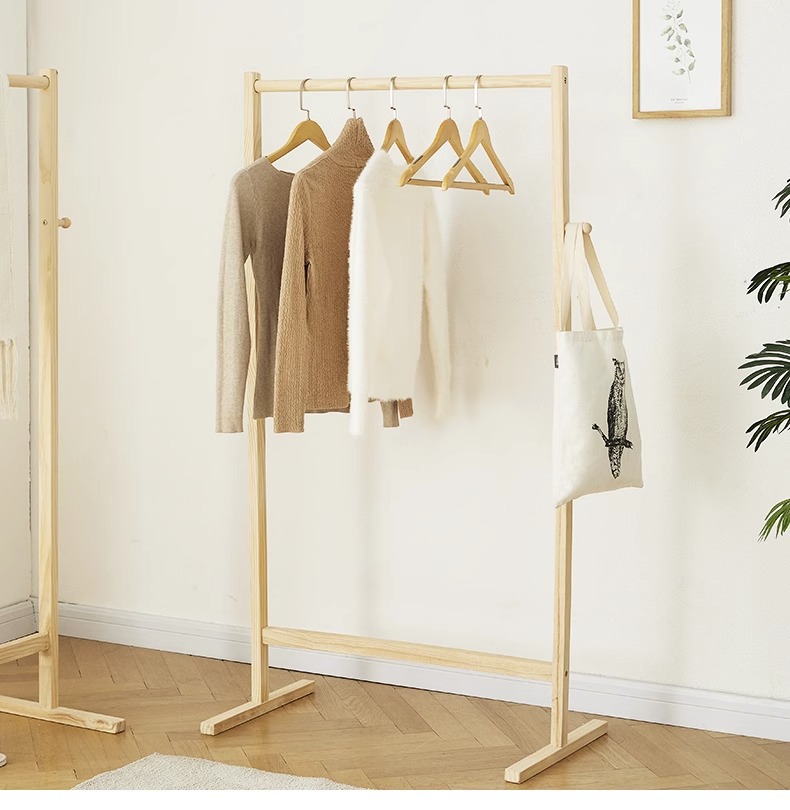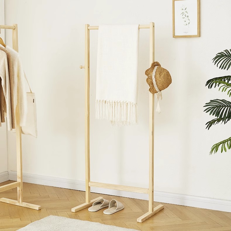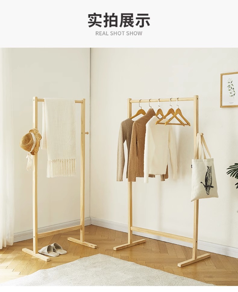 원목 플로어 스탠딩 옷걸이, 침실용 가정용 현대식 심플 소형 원목 인기 옷걸이 수납함스토어 가기
