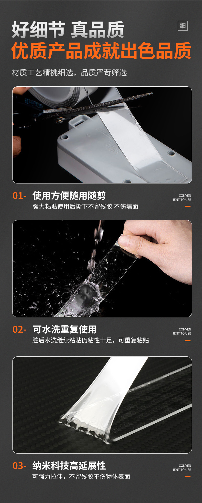 투명 아크릴 양면 테이프 고점도 나노 양면 테이프 흔적 없는 아크릴 테이프 강력 방수 후크스토어 가기