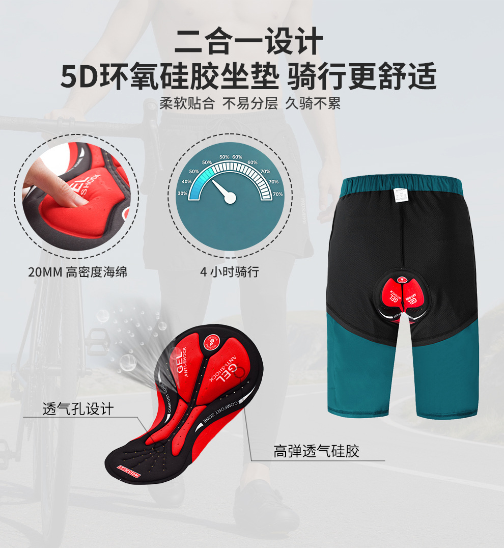 两件套短裤。内置3D填充内裤,提供您所拥有舒适的骑行体验,实用性强。