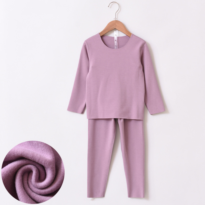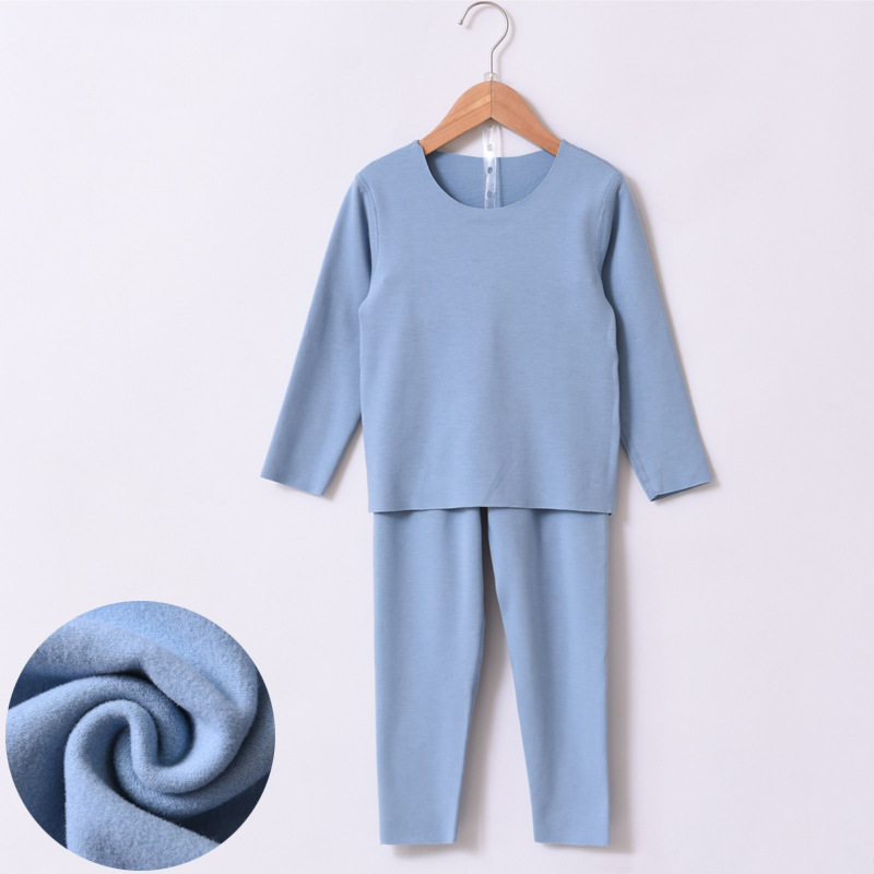 Zhende 벨벳 열 속옷 어린이 기모 두꺼운 세트 가정 옷 발열 소년 소녀 가을 옷과 바지