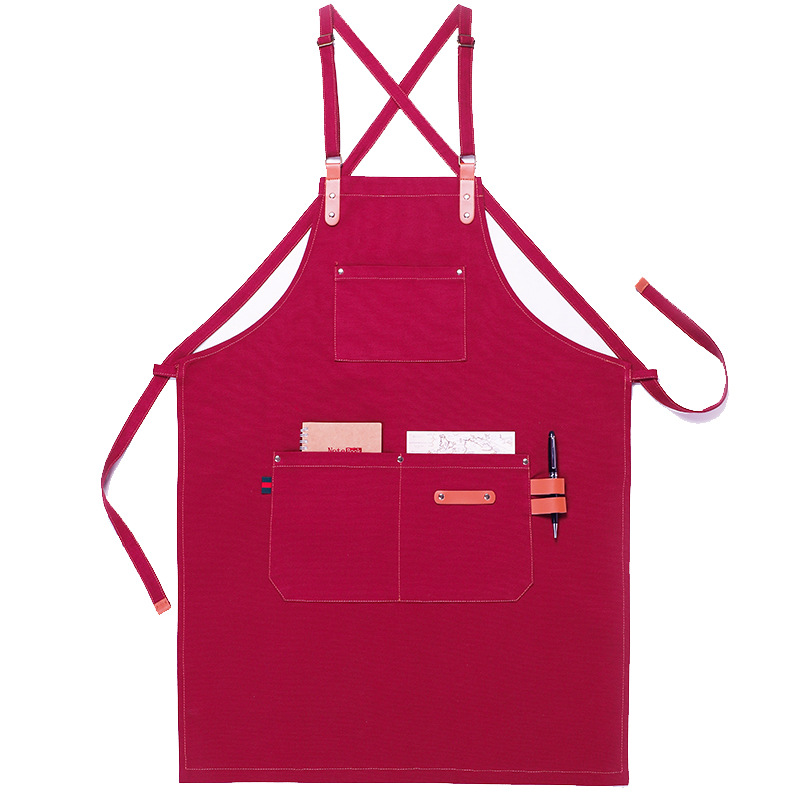 한국 패션 데님 앞치마 사용자 정의 로고 인쇄 커피 숍 우유 차 가게 헤어 스타일리스트 바 작업 옷 주문 제작