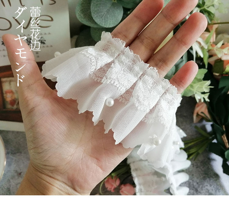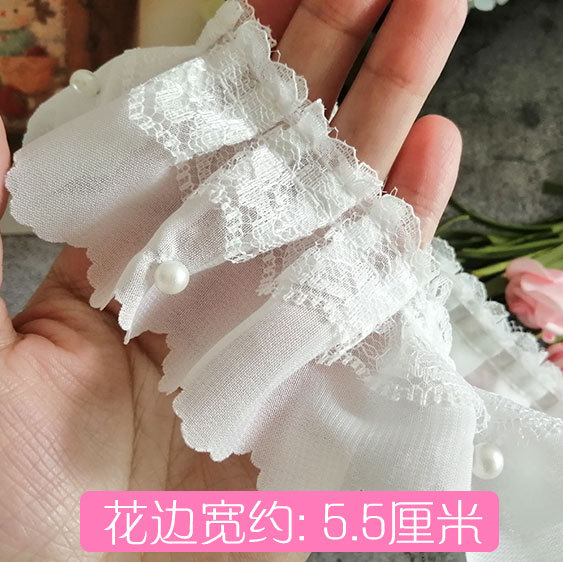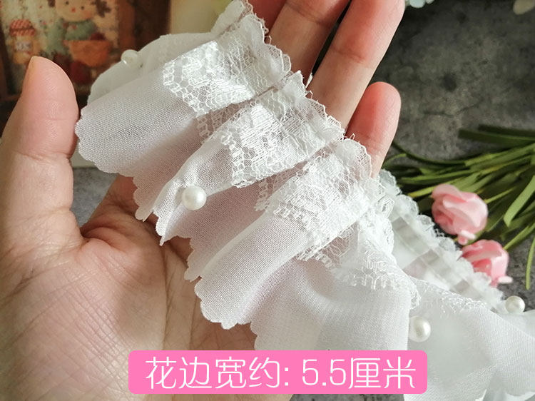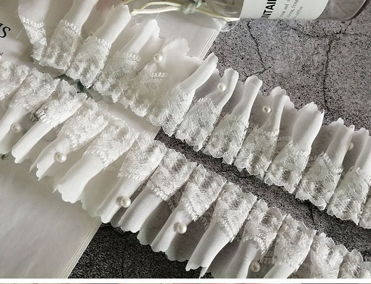 고급스러운 흰색 이중 레이어드 비즈 레이스 장식 소재, 커튼 장식, 의류 주름 장식, 진주 스커트 밑단스토어 가기