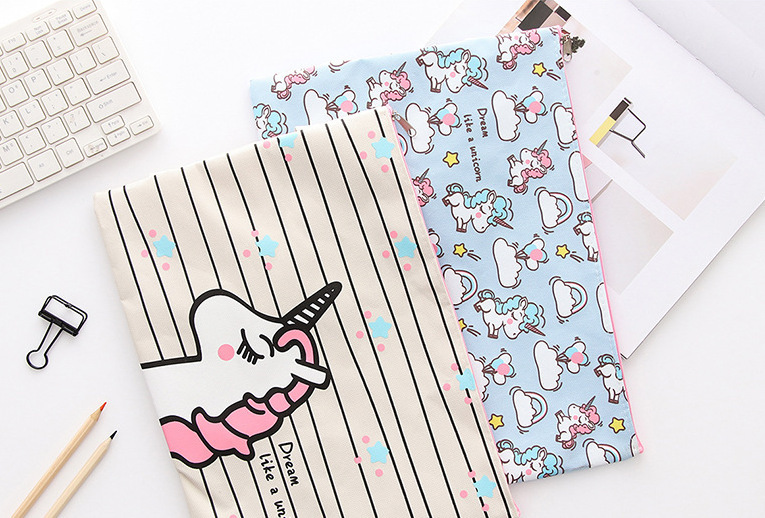 만화 유니콘 A4 파일 가방 학생 지퍼 옥스포드 천 정보 가방 시험 보충 수업 보관 가방스토어 가기