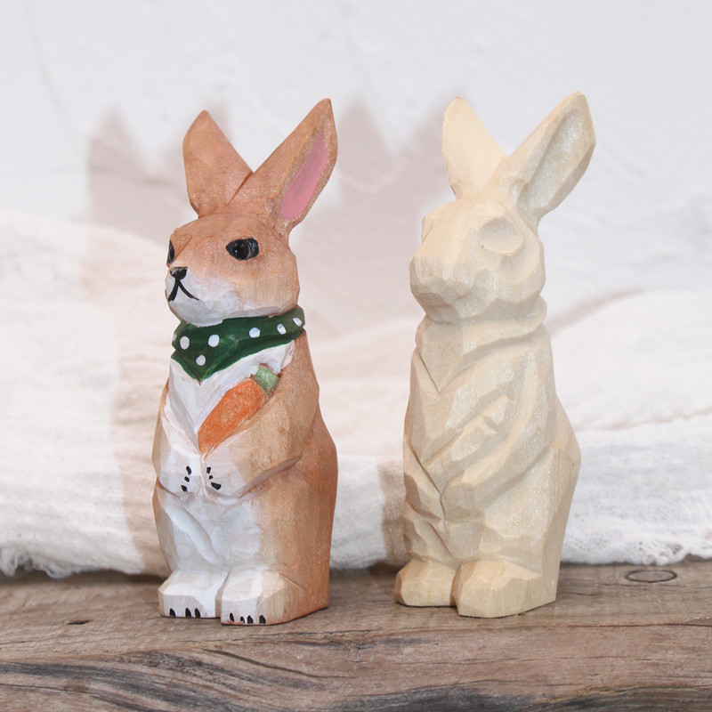 아오키의 동물 모양 원목 수공예 조각 목재 가정용 장식품, 동물 모양의 흰색 장식품은 직접 손으로 그림을 그릴 수 있습니다.스토어 가기