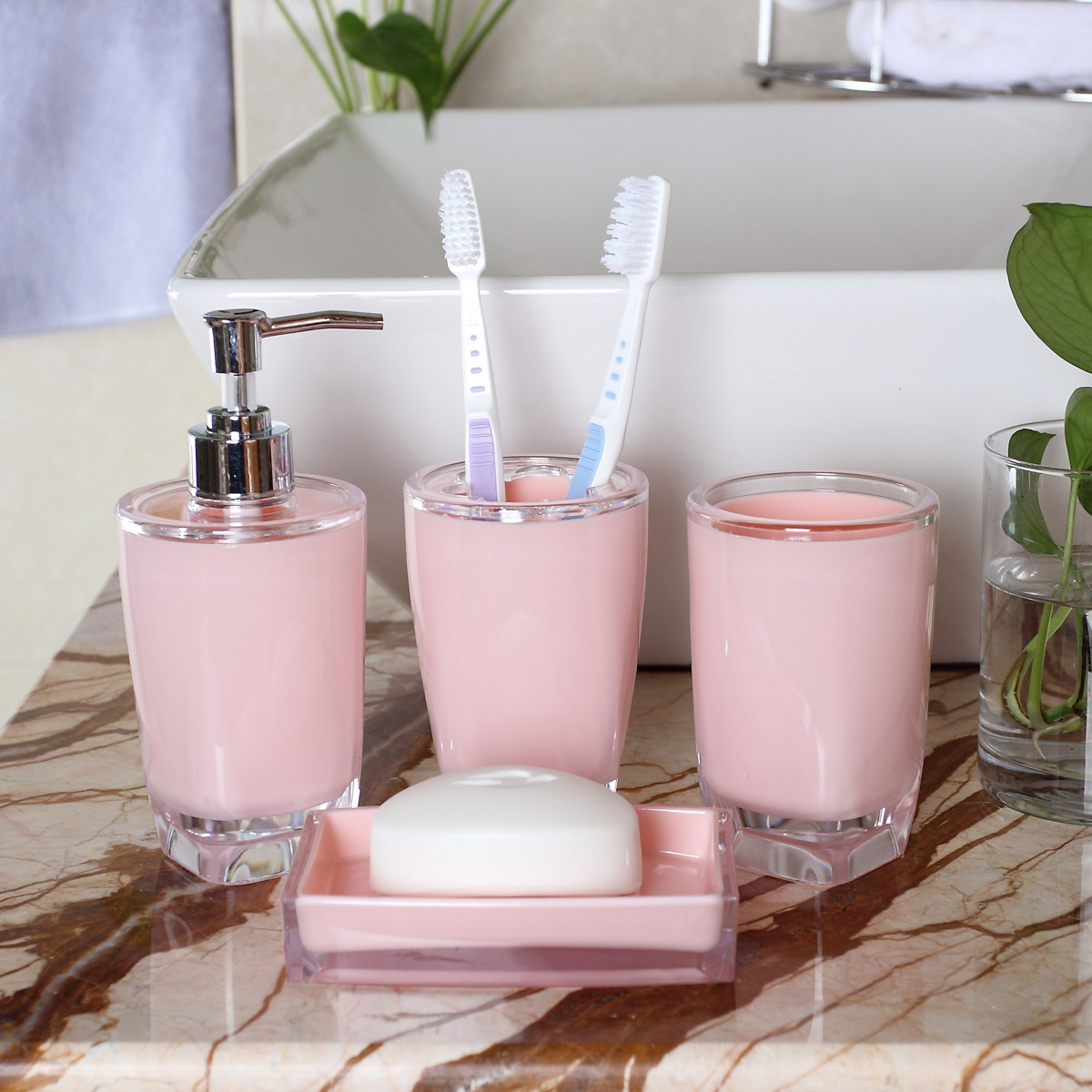 플라스틱 컵 칫솔 홀더 로션 병 비누통 세면도구 목욕 4 종 욕실 세트